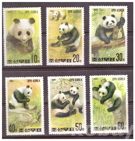 (동물) 북한 1991.1.10 참대곰 (세계우표전람회 <<필라니뽄 91>> 6완 MNH