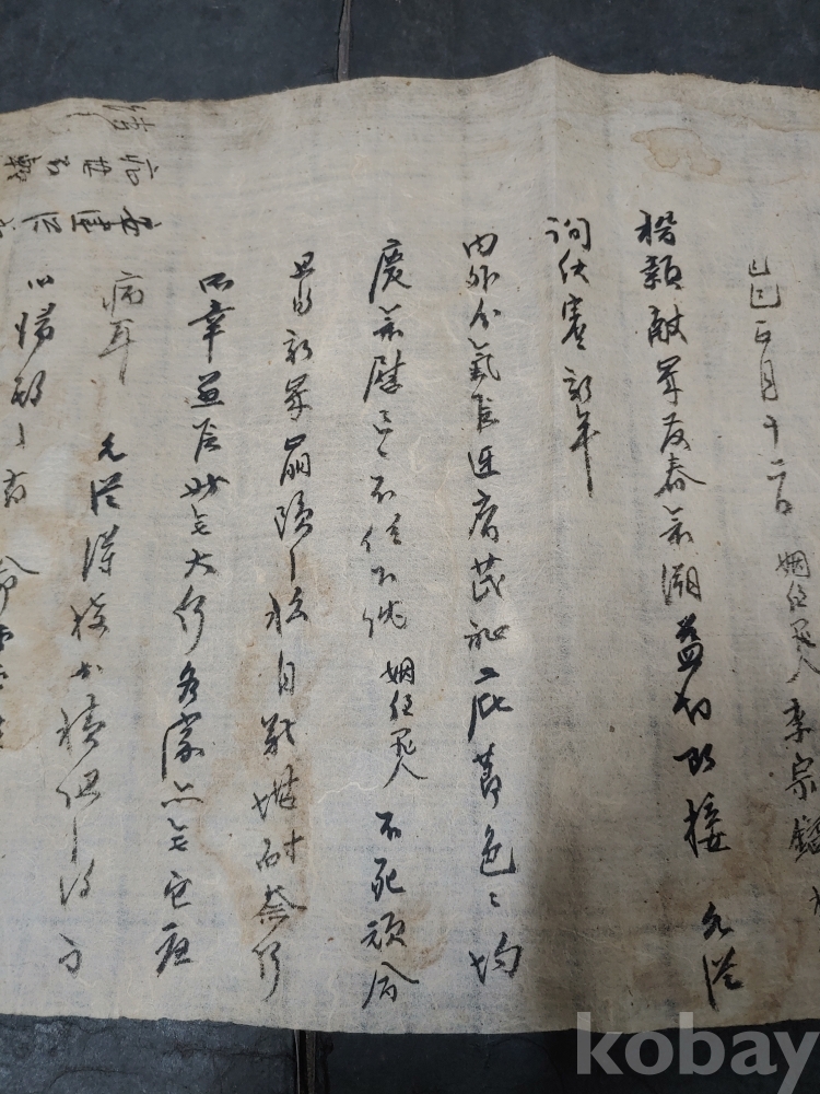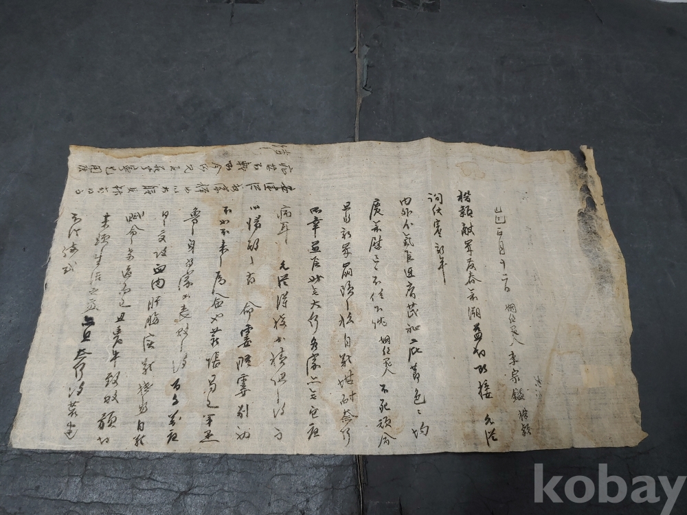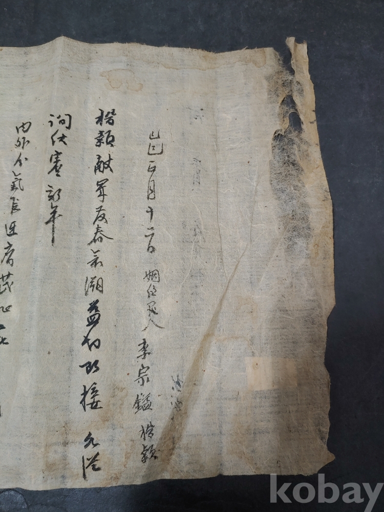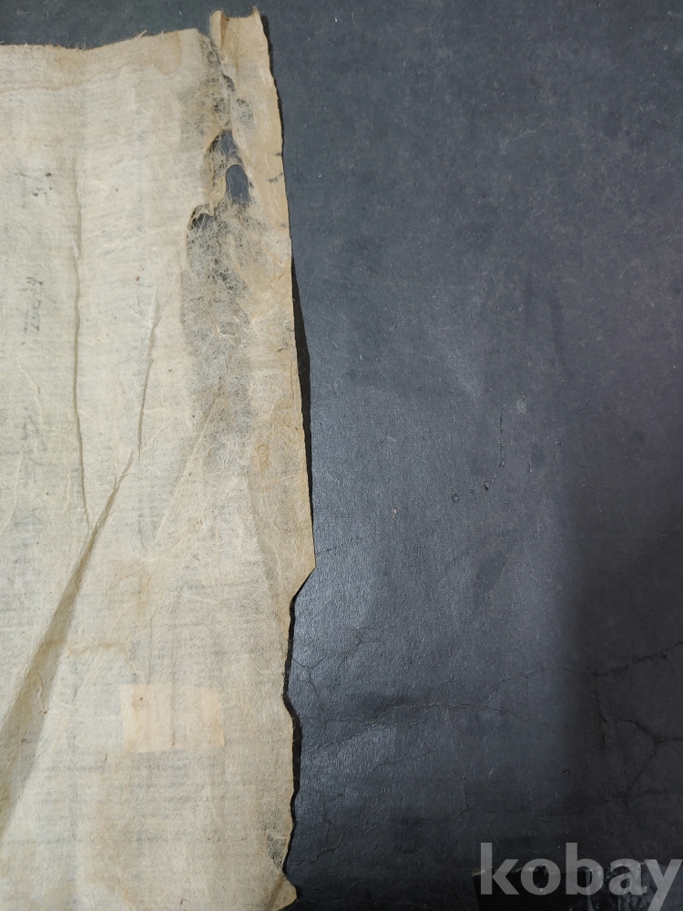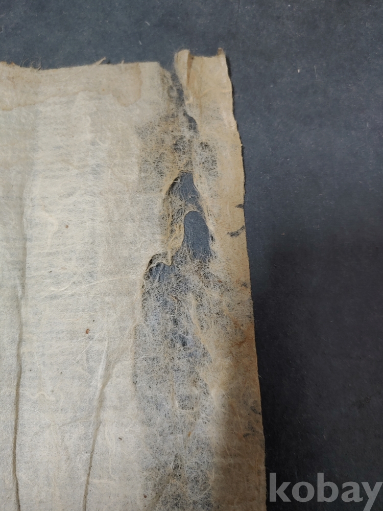 얼룩과 오른쪽에 조금 찢어진 부분이 있음