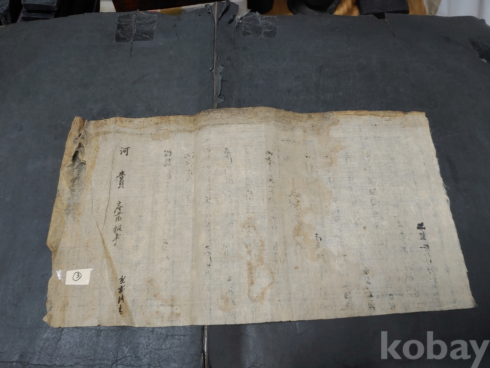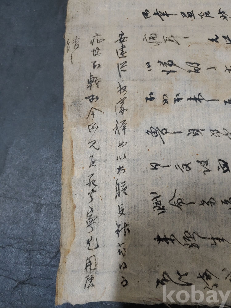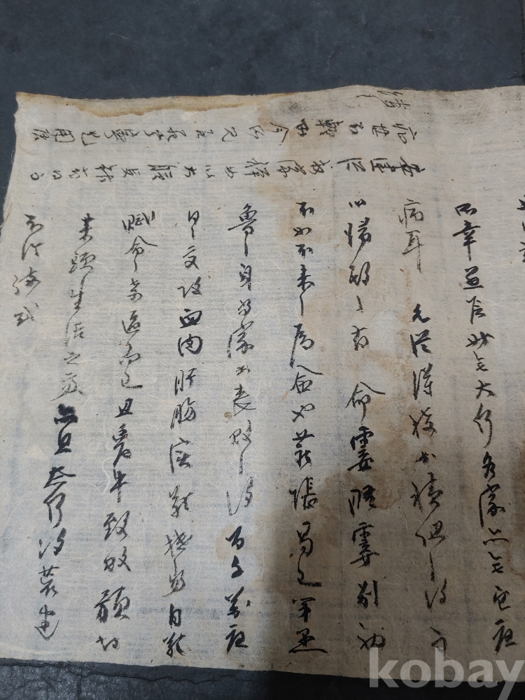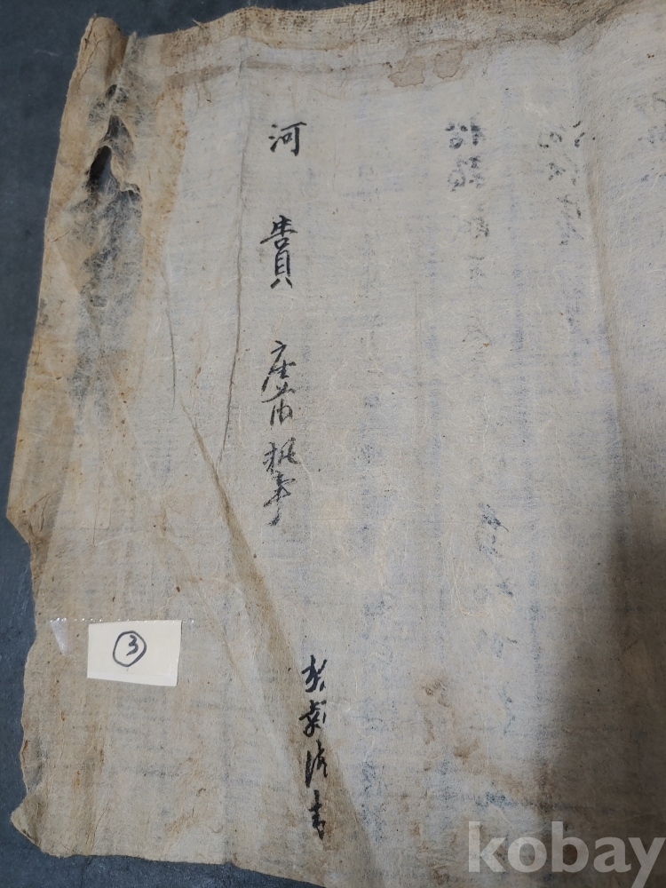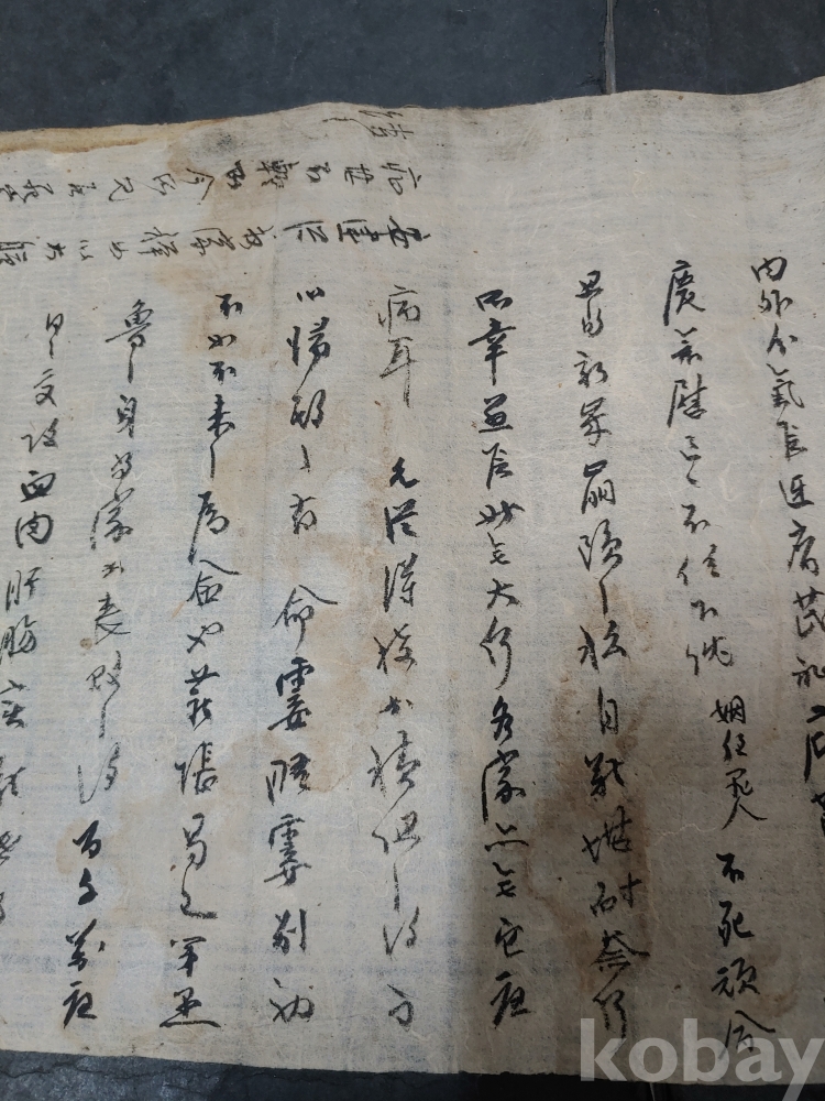 얼룩과 오른쪽에 조금 찢어진 부분이 있음