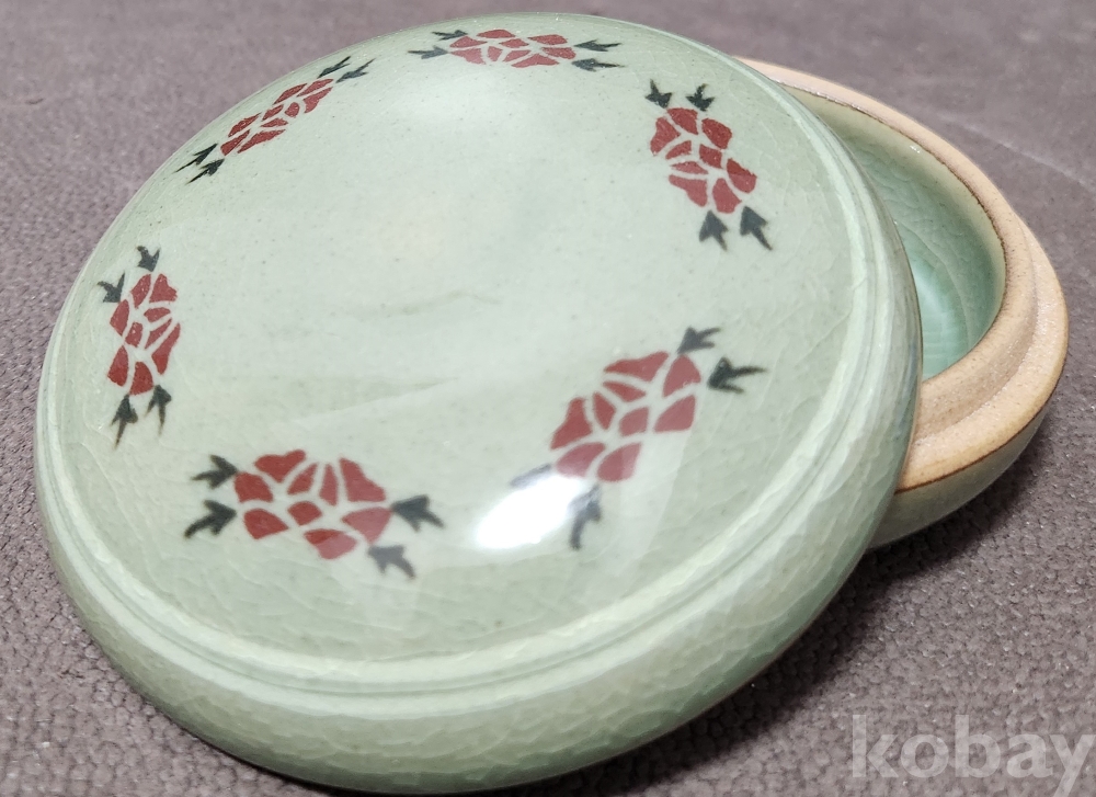 청자 진사 화훼문 분합 靑磁 辰砂 花卉紋 粉盒 < 도예가 수결 作 >