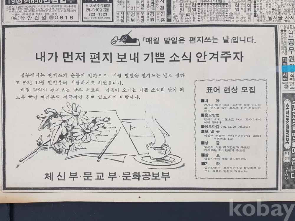 **** 1982.12.08(동아일보)/체신부·문교부·문화공보부 표어현상모집 광고 등/12면