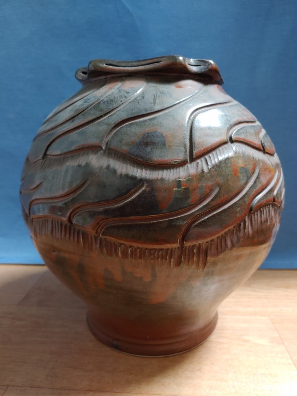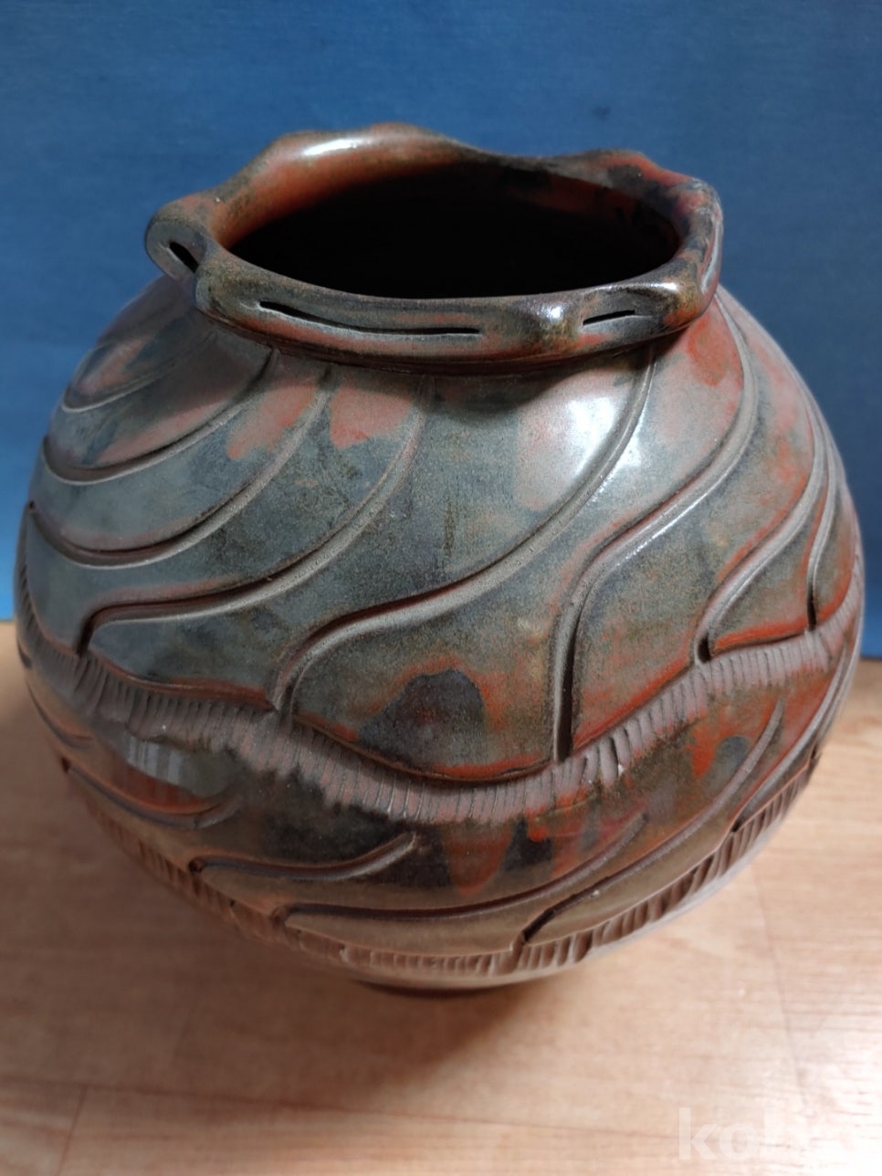 물결 문양이 음각으로 있는 도자기 입니다.