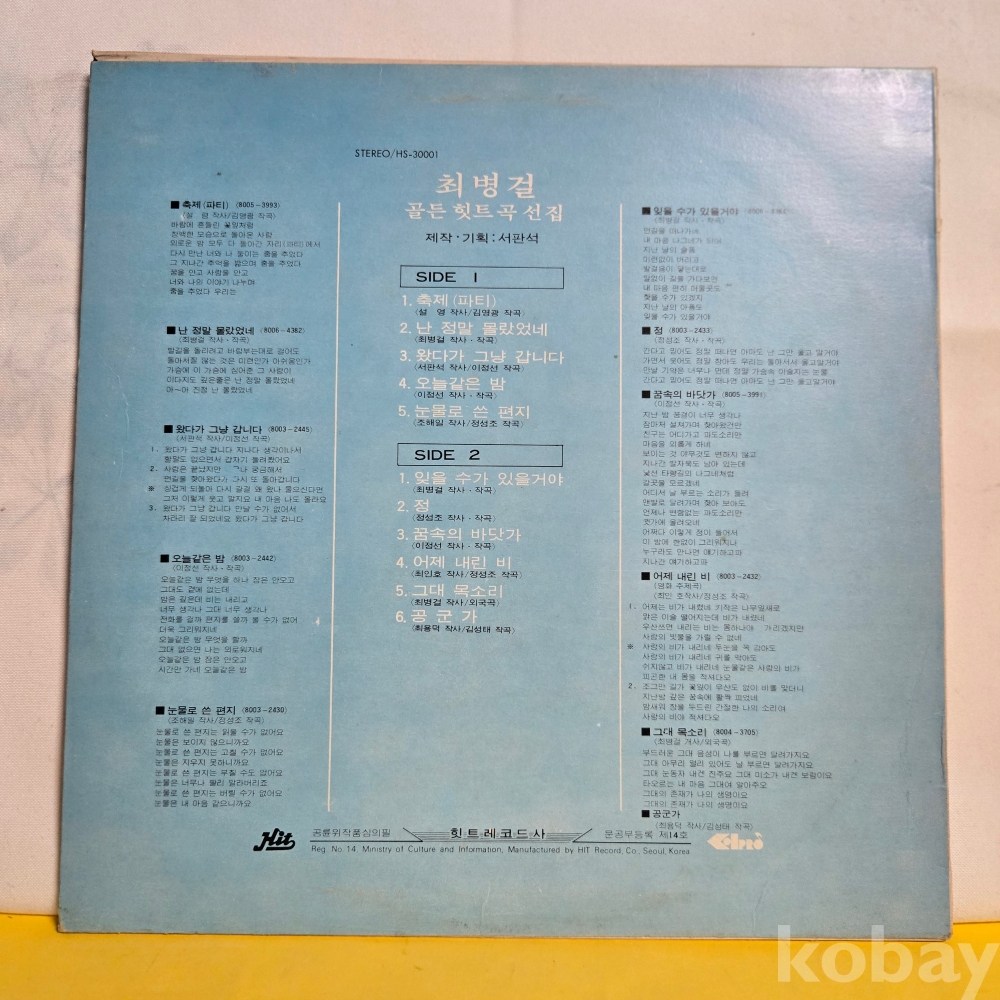 중고 Lp인 관계로 취소나 반품은 불가합니다.