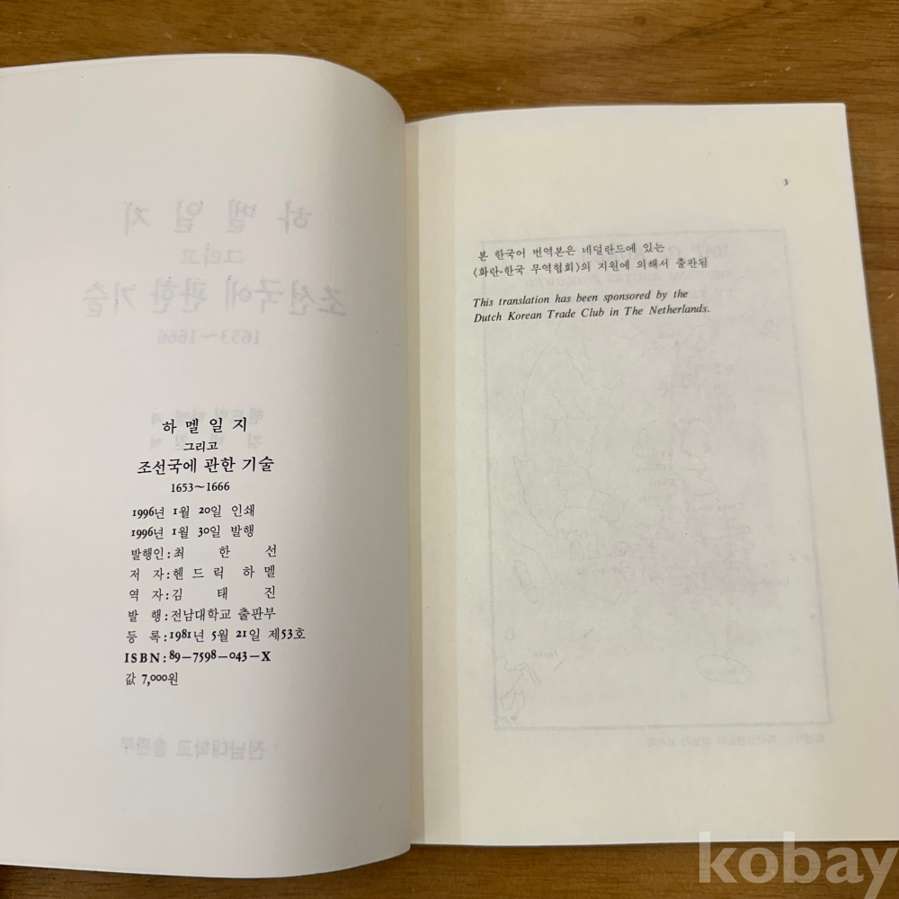 [조선후기사, 표류, 체험록] 헨드릭 하멜 저, 김태진 역, <하멜일지 그리고 조선국에 관한 기술>, 전남대학교출판부, 1996, p. 153, 상태 중급(사진참조)