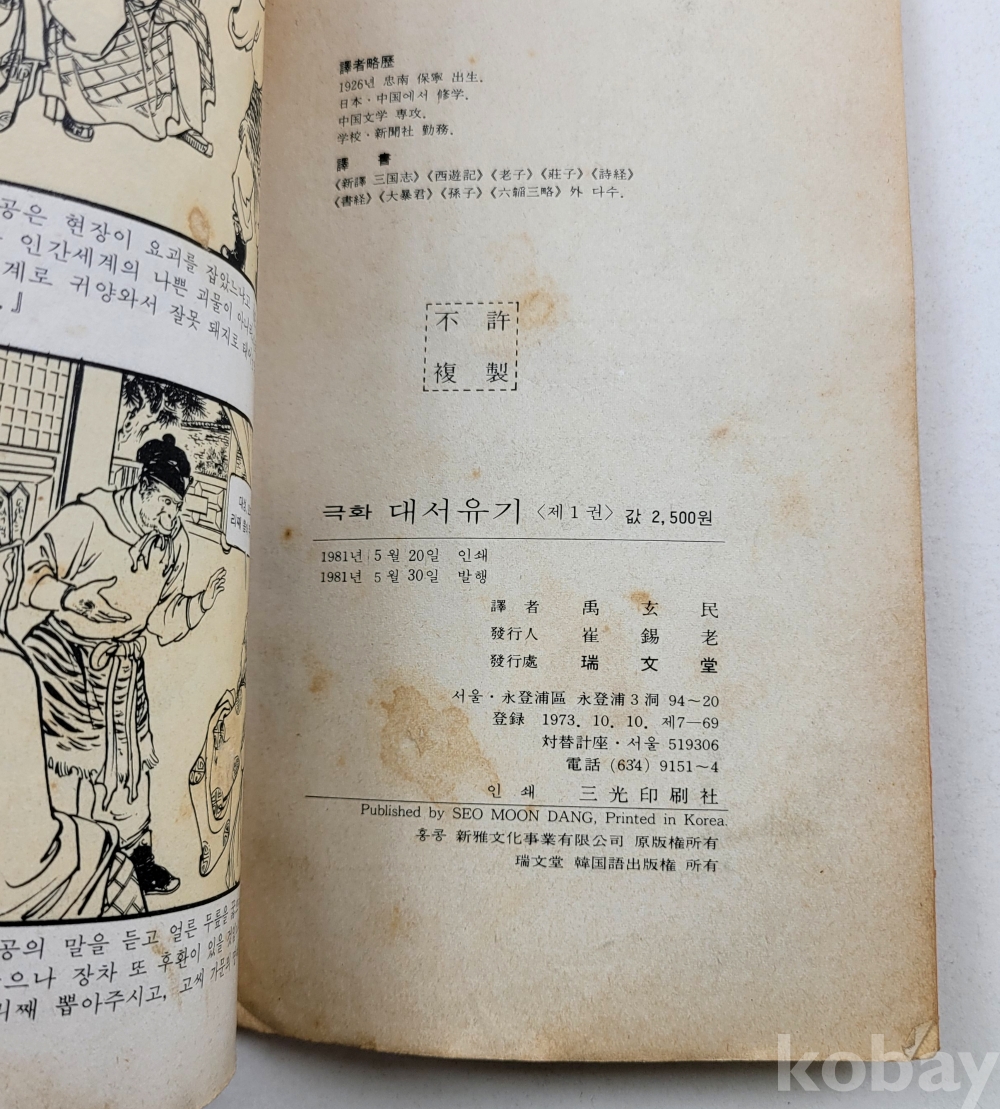물 품 명 | 극화 대서유기 : (1~6)완결 총6권 / 1981년 초판 / 서문당 |