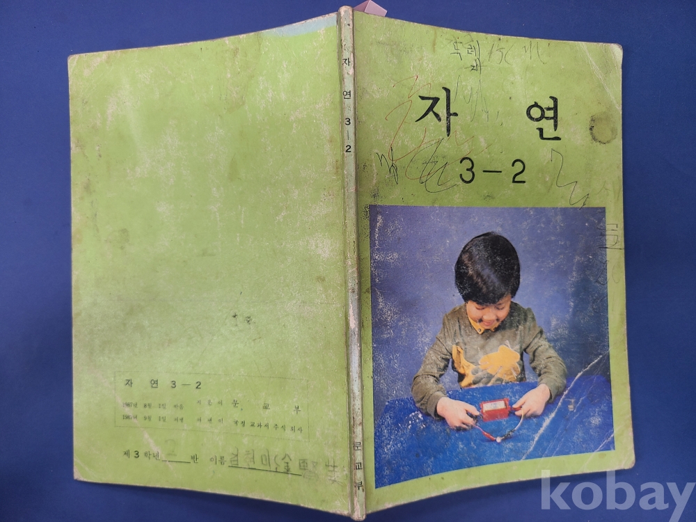[교과서] 자연3-2*1987년/문교부 발행,낙서, 물먹음,찢어진부분 있음