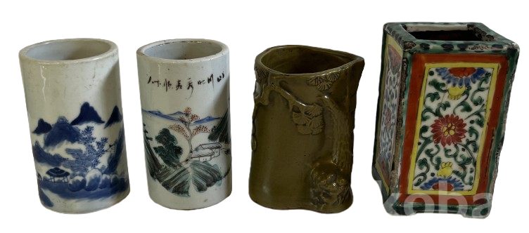 상 태 | 청색 산수화 자기 통 지름 6.5cm, 높이 11.5cm 채색 산수화 자기 통 지름 6.5cm, 높이 11.5cm 나무가 조각된 목재 통 세로 7cm, 가로 8cm, 높이 11cm 꽃이 그려진 채색 사각 자기 통 세로 7.5cm, 가로 7.5cm, 높이 12.5cm ** 본 출품물은 택배 배송이 불가하며, 직접 수령을 요합니다. **본 물품은 진·가품 확인이 어려운 빈티지 인테리어 소품으로, 이로 인한 반품은 불가합니다. | |||||||