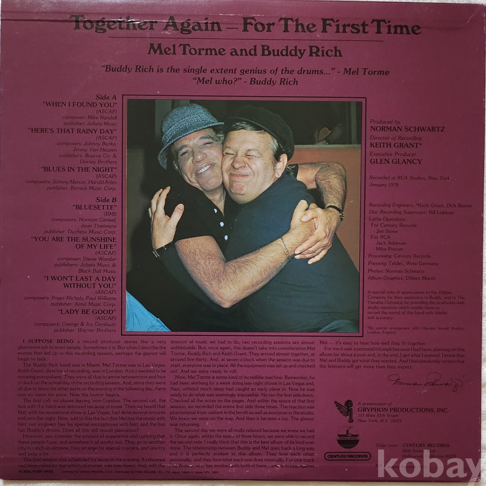 이 음반은 멜 토메(Mel Tormé)와 버디 리치(Buddy Rich)째즈 앨범 입니다.