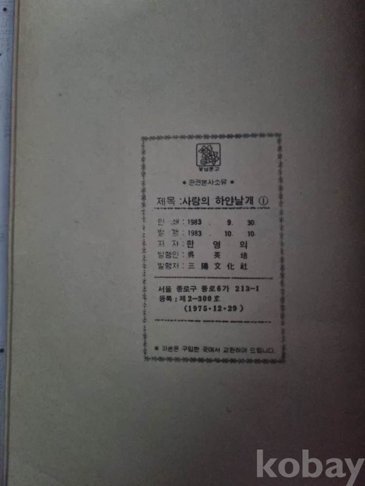 사랑의 하얀날개1 한영의 삼양문화사 1983
