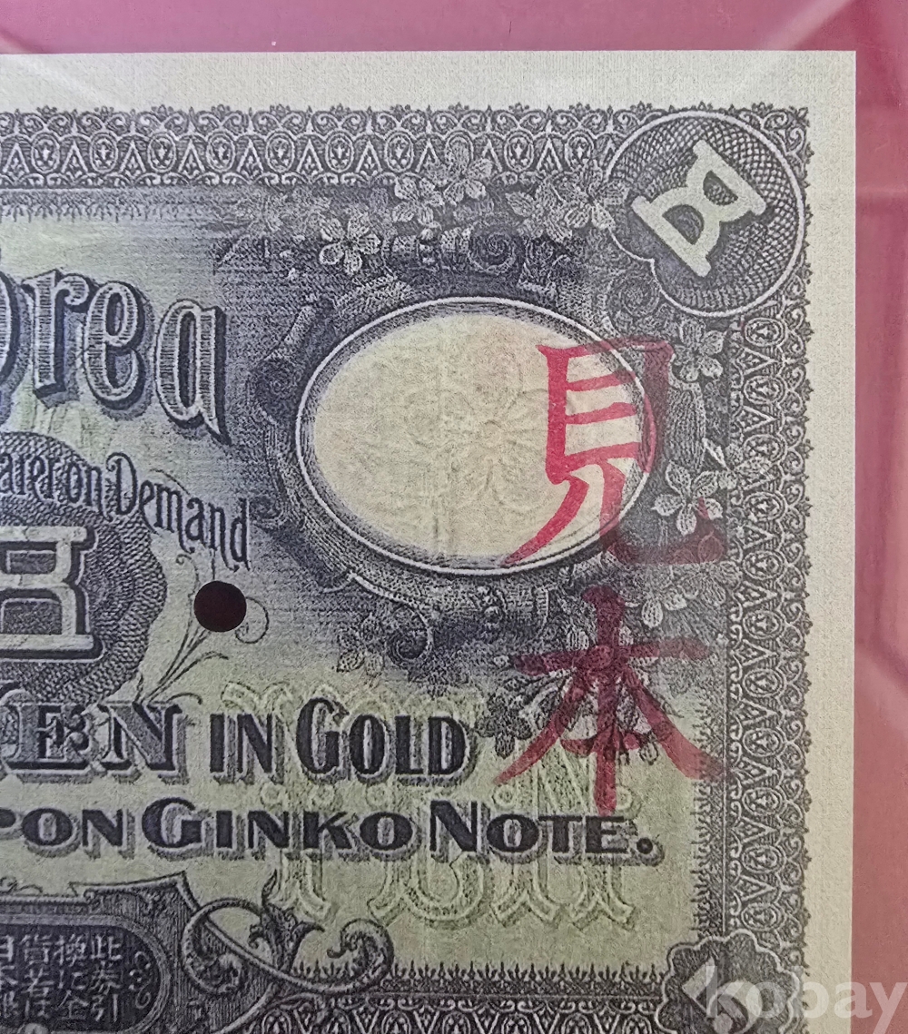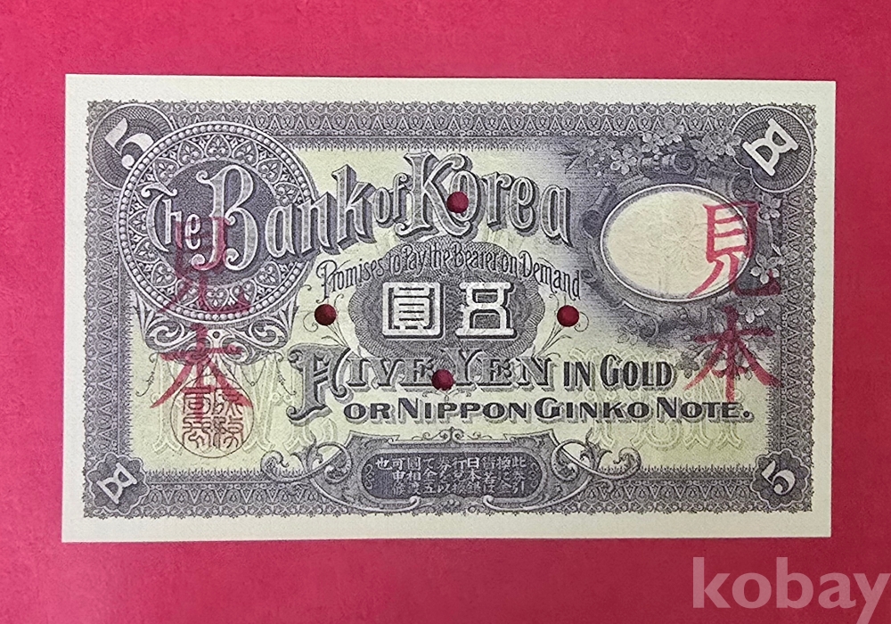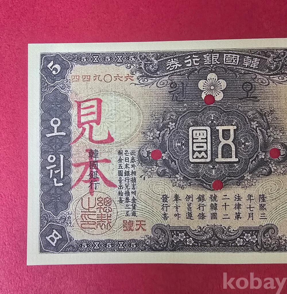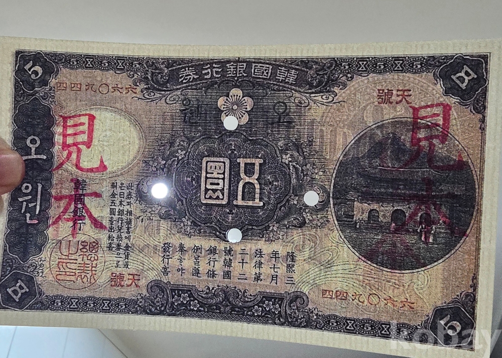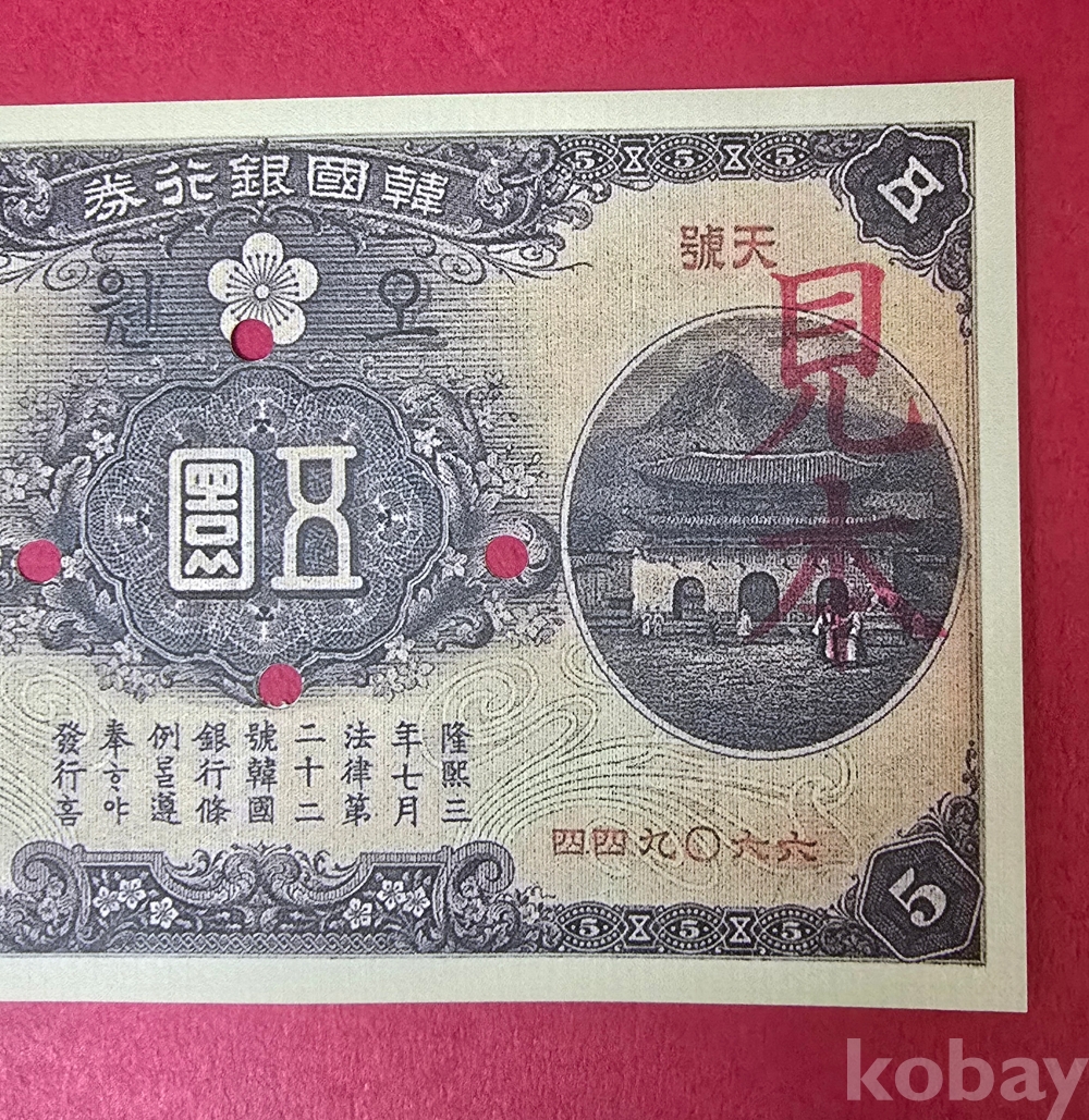 한국은행 견본권 견양권 오원 지폐 입니다.