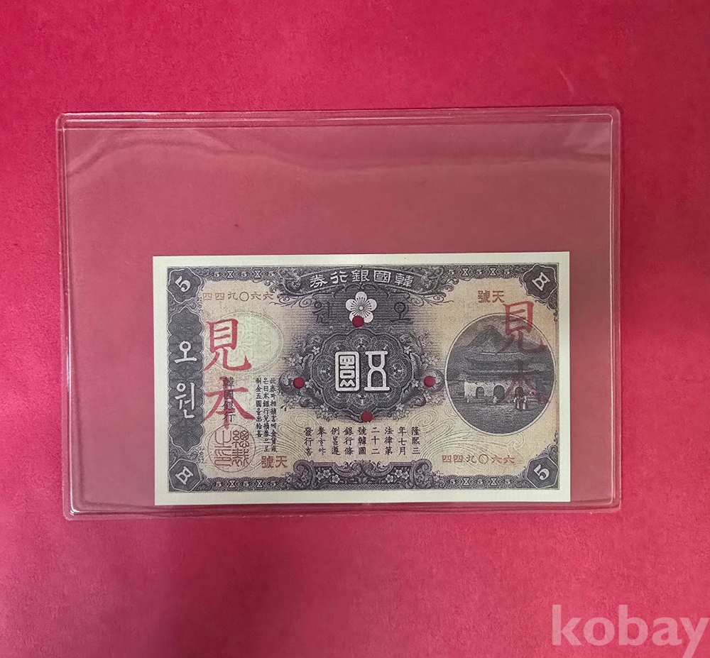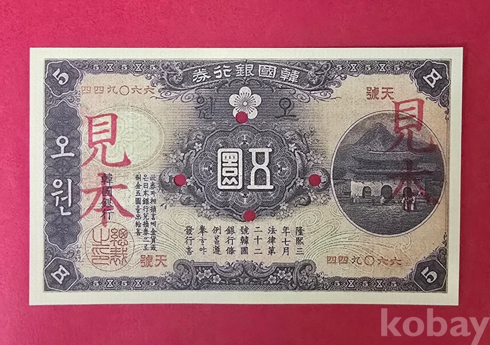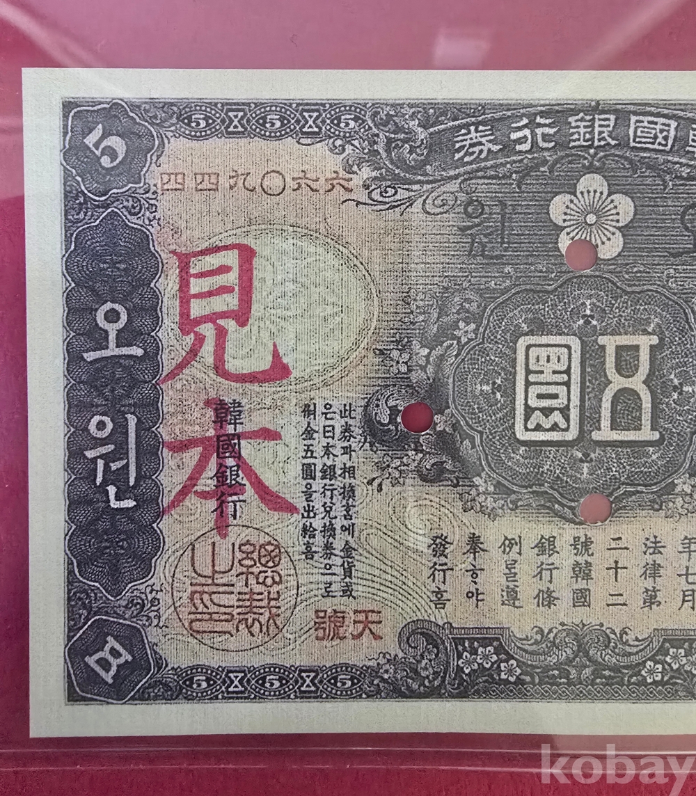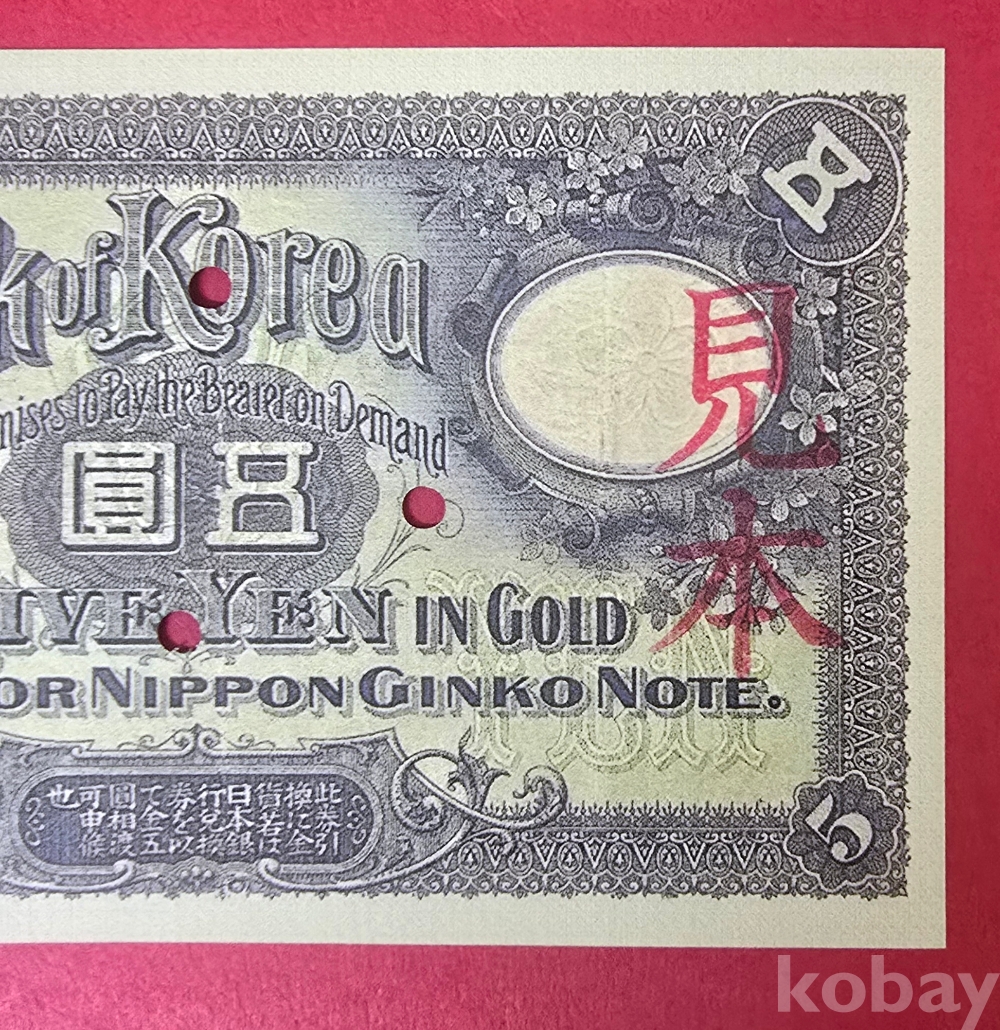 한국은행 견본권 견양권 오원 지폐 입니다.