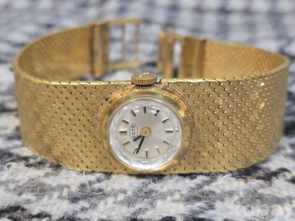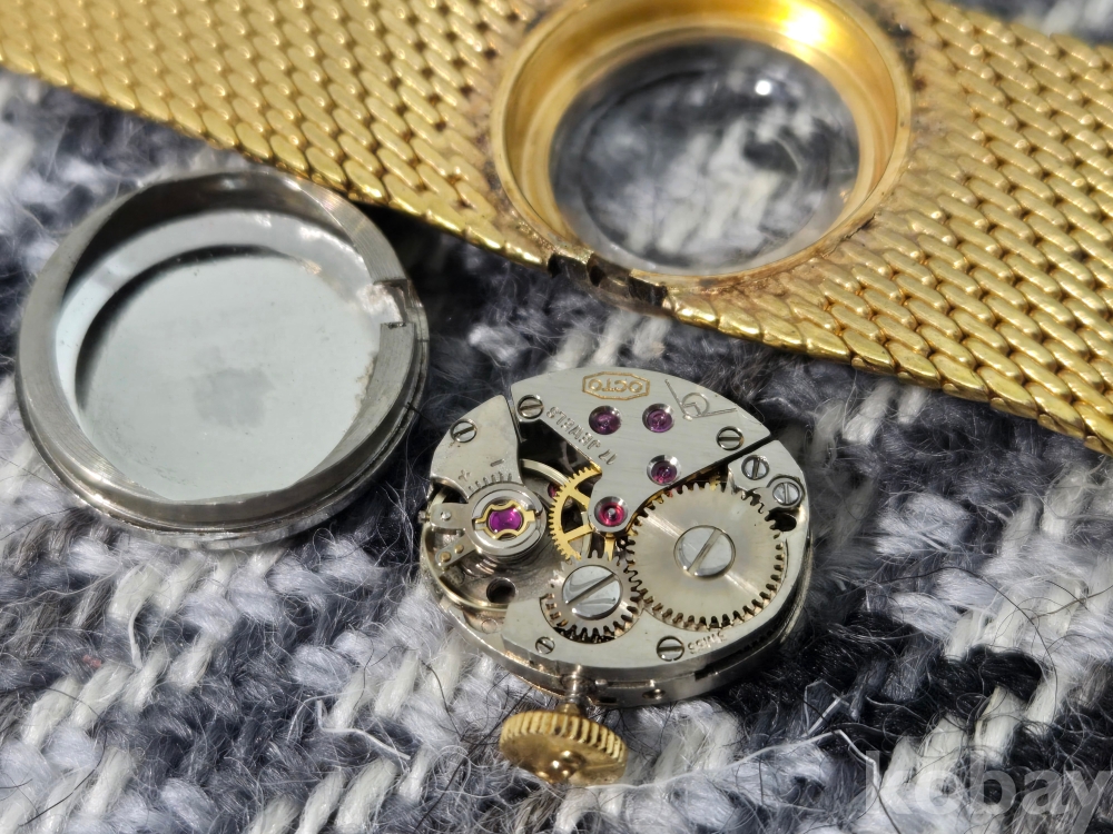 70년대 제작된 시계로 아름다운 골드톤은 거의 손상없이 완벽하고 시계역시 정상작동..