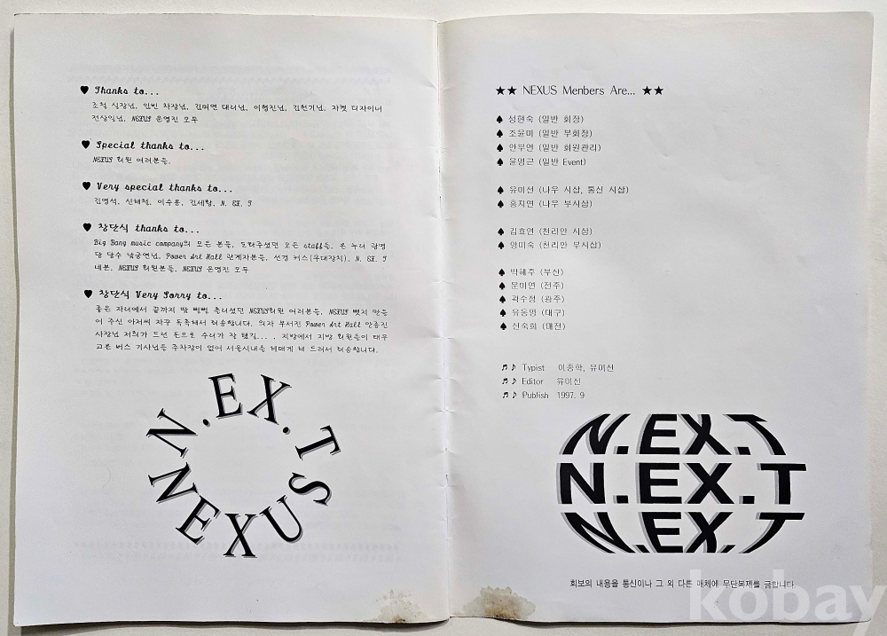 물 품 명 | [신해철 넥스트 자료] NEXUS 창간호 / 1997년 / 통권 제1호 / 넥서스 회보 |