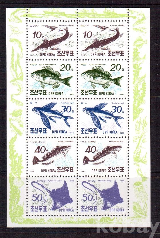 (어류) 북한 1990.11.20 물고기 sheetlet of 10 MNH