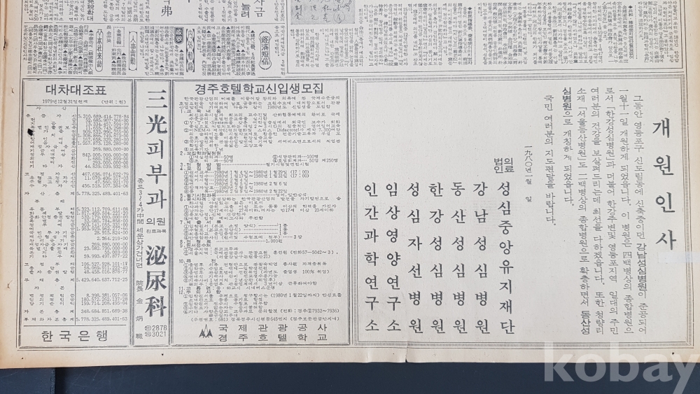 **** 1980.01.10(한국일보)/강남성심병원 개원인사 광고포함/약 8면