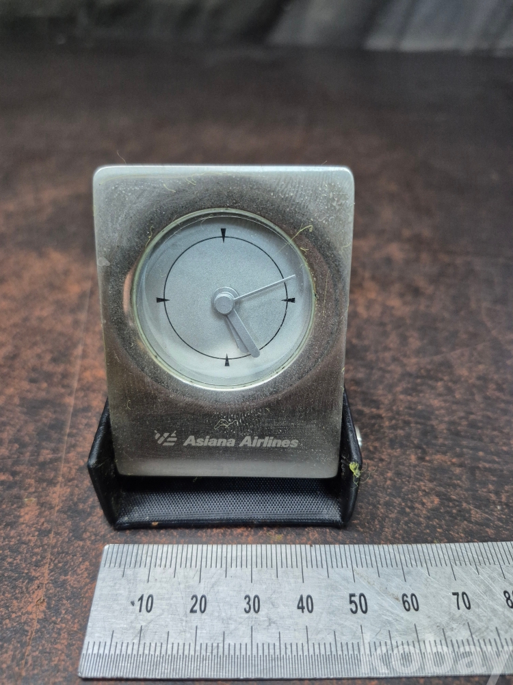 1980년대 아시아나 에어라인에 선물한 소형 스테인레스 재질의 소형 휴대용 시계 묵직합니다 건전지능 방전상태 정상작동 5*2*6.5