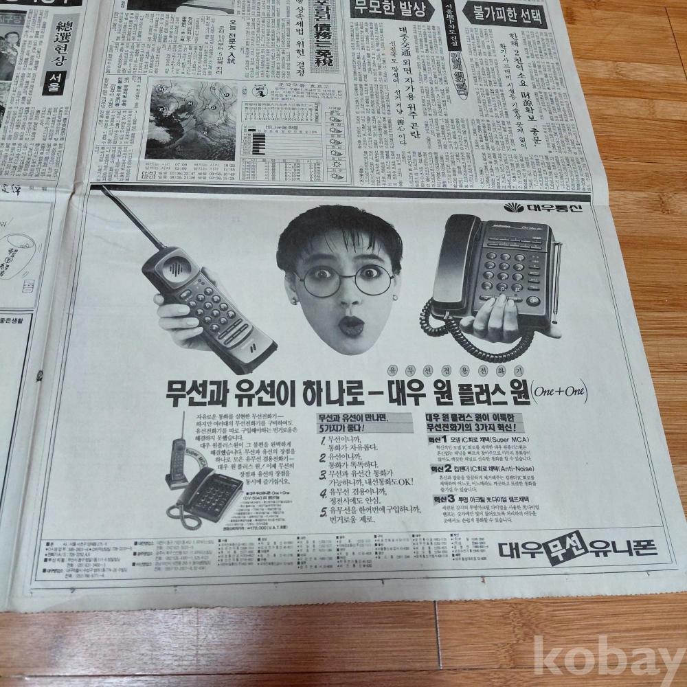 대우 원플러스원 대우무선유니폰 광고 조선일보 92년2월26일 올려드립니다