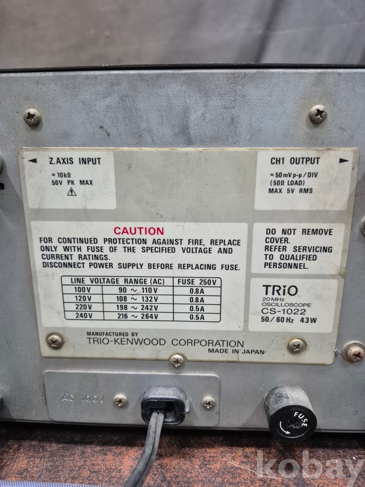 TRIO KEENWOOD CORPORATION 20MHZ OSCILLOSCOPE (오실로스포크) 모델 CS-1022 정상작동 메이드 인 재펜 26*45*17
