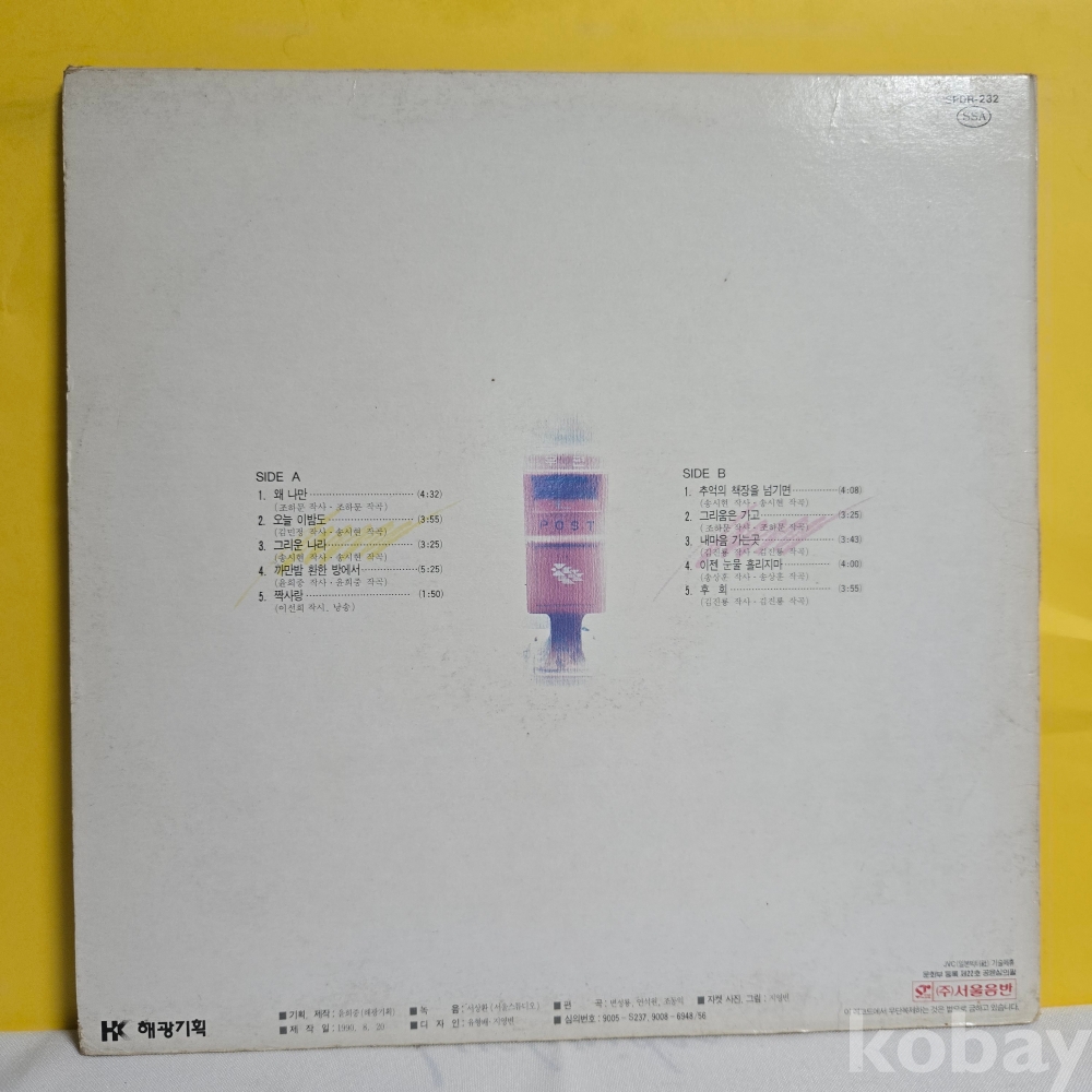 | 자켓상태 | EX : 약간의 마모, 모서리 찢김 존재 | 음반상태 | EX : 재생에 영향 없는 가벼운 기스 존재 | 발매정보 | 초반 | 가사지여부 | 유 |