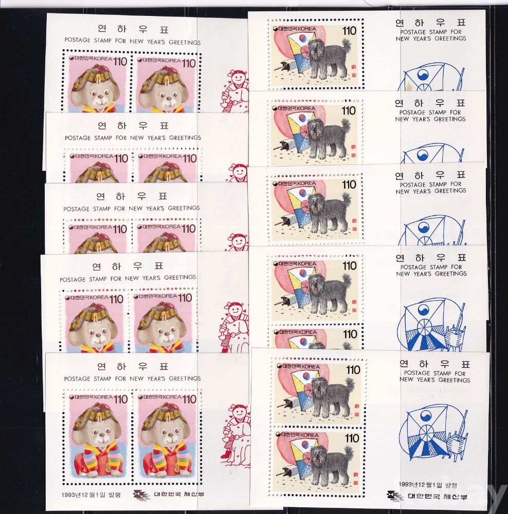 - 미사용 1994년용 연하우표 시트 2종 10장 모음 - 1993년 발행