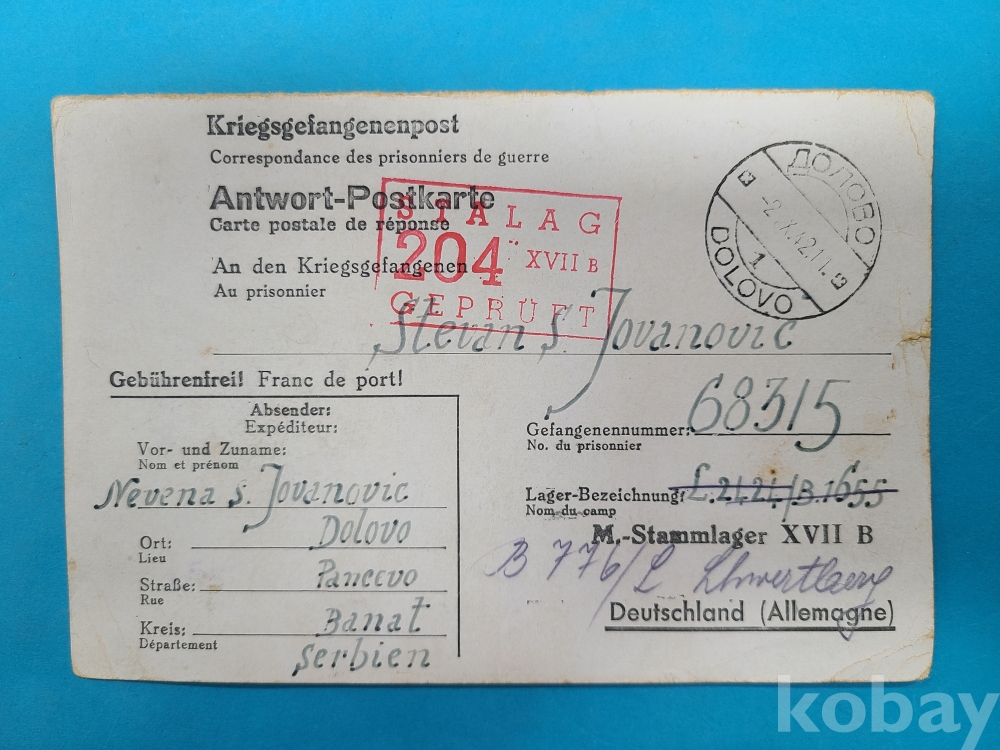 [테마틱] 전쟁*제2차세계대전시 1942년 독일포로수용소 우편엽서
