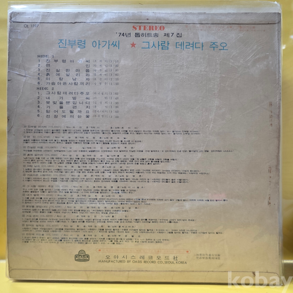 74년 오아시스 톱히트송7집 방주연외 12인 희귀반