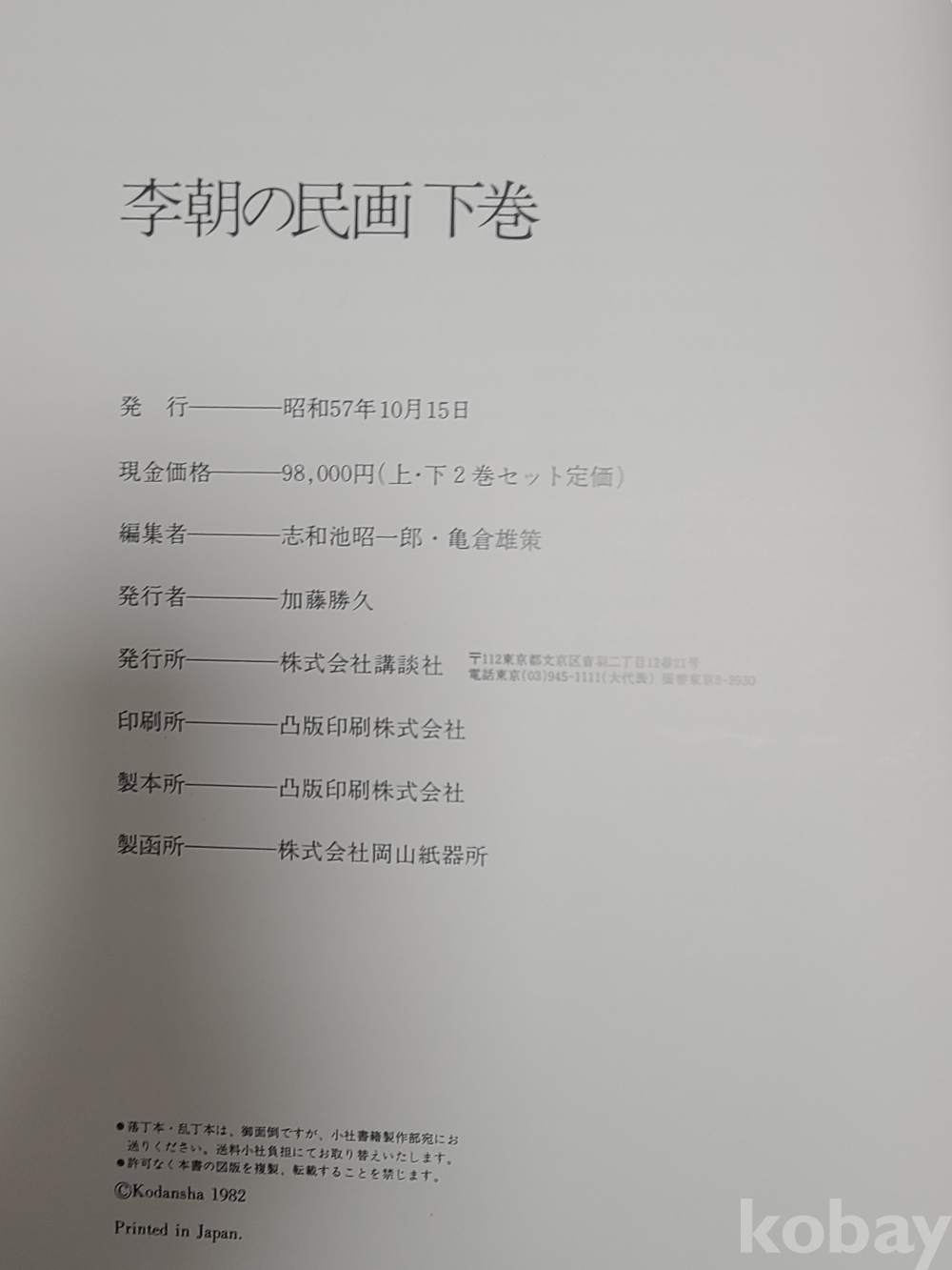 1982년 10월 15일 상, 하 2책 발행