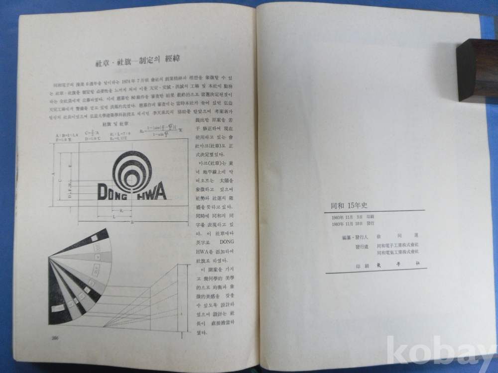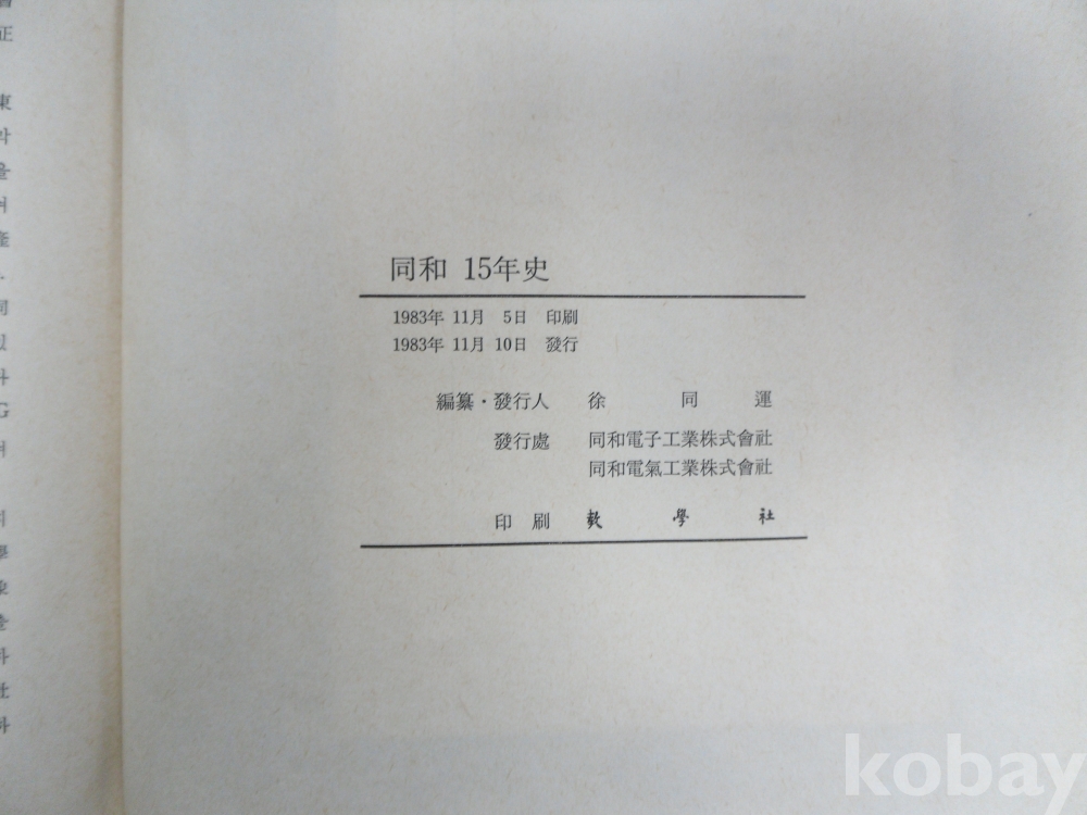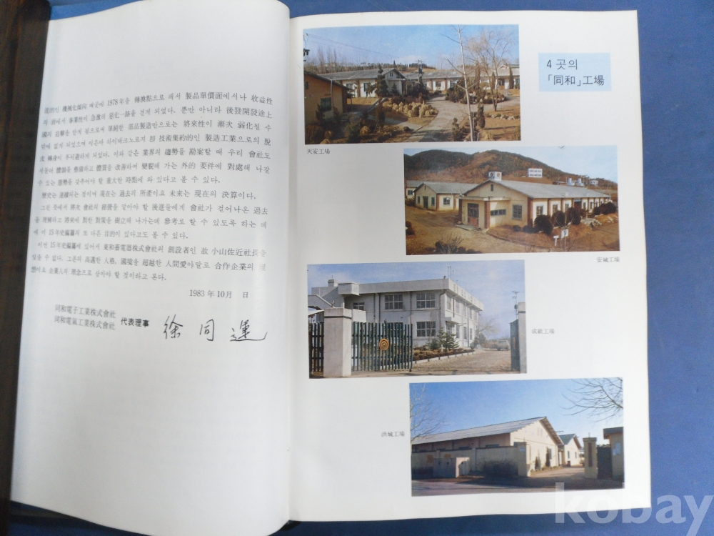 同和15年史*동화전자공업주식회사.동화전기공업주식회사 1983년 발행인;서동운, 266페이지