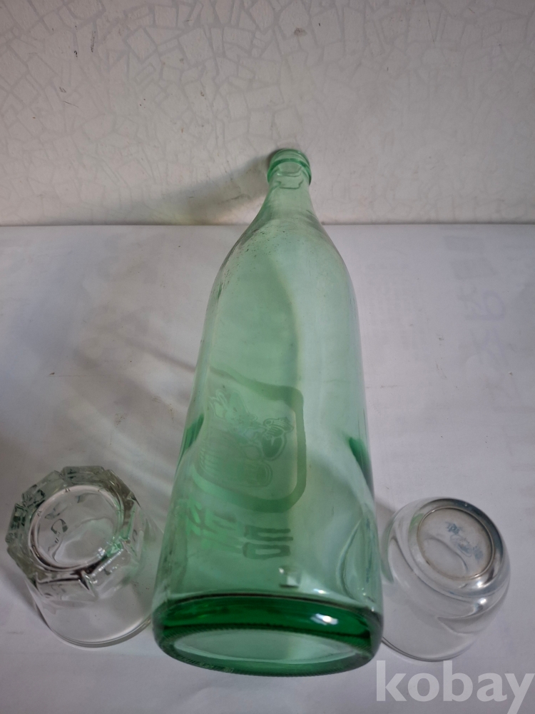 금복주 소주4홉 공병과 진로소주 잔입니다