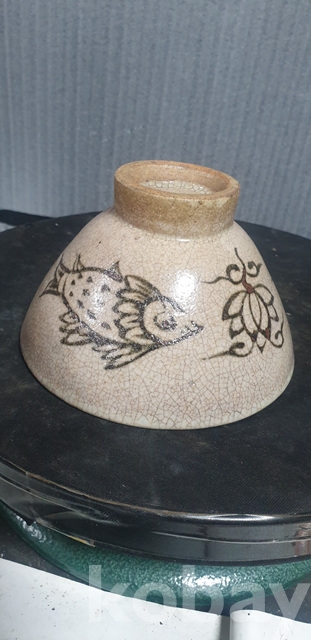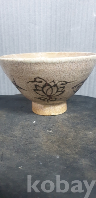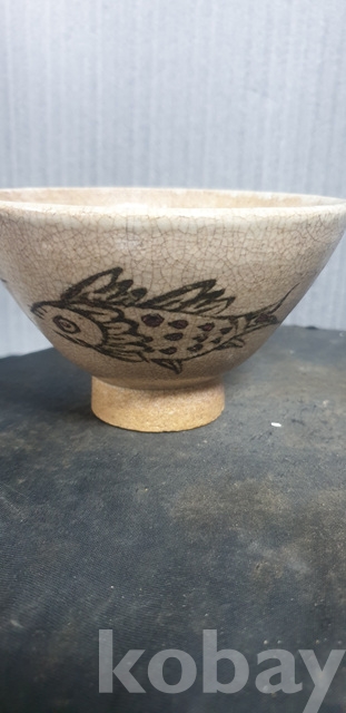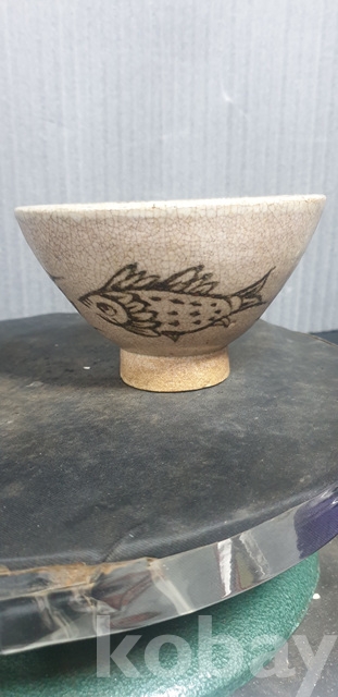 라-10.수작업으로만든굽이높은.연화Tkd물고기 문양백자철사다완