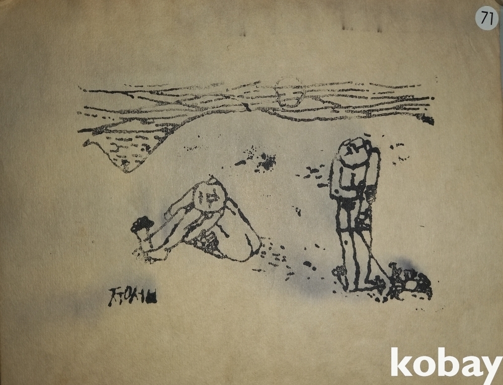 작가 사인이 보이는 목판화입니다, 얼룩 구김등은 보임니다,