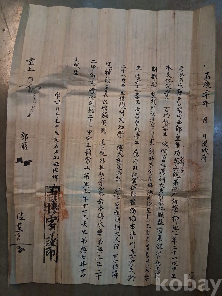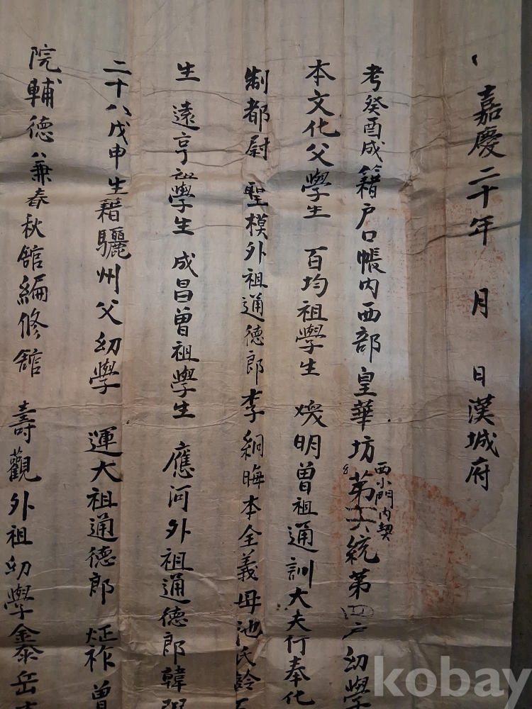 * 물품 중 문서 1건에 嘉慶20년(1815년) 漢城府 라는 내용 있음