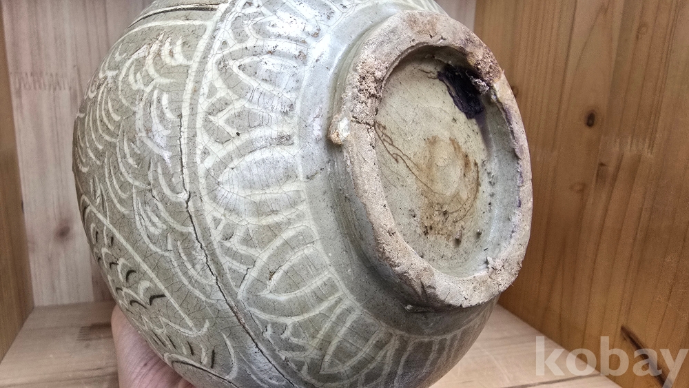 [상태 완전] 사진에서 보시는 바와 같이 구연부나 굽, 몸통 어디에도 유(금)나 수리된 곳 없이 원형이 완벽하게 보존된 '상태 완전'한 기물입니다.