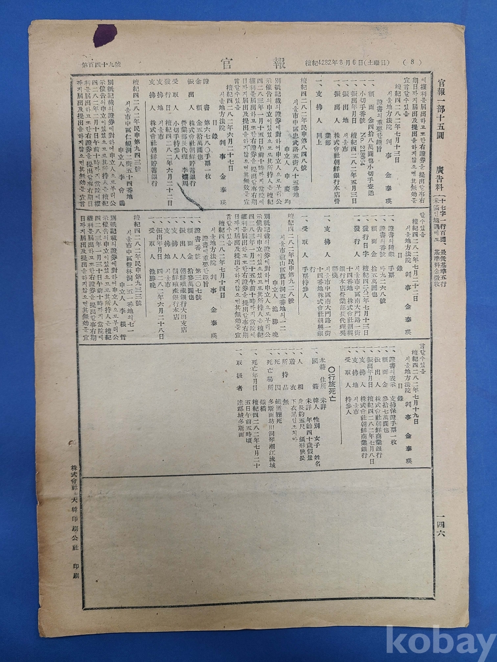 官報 제149호(1949년8월6일)/8면/대한민국정부공보처 발행