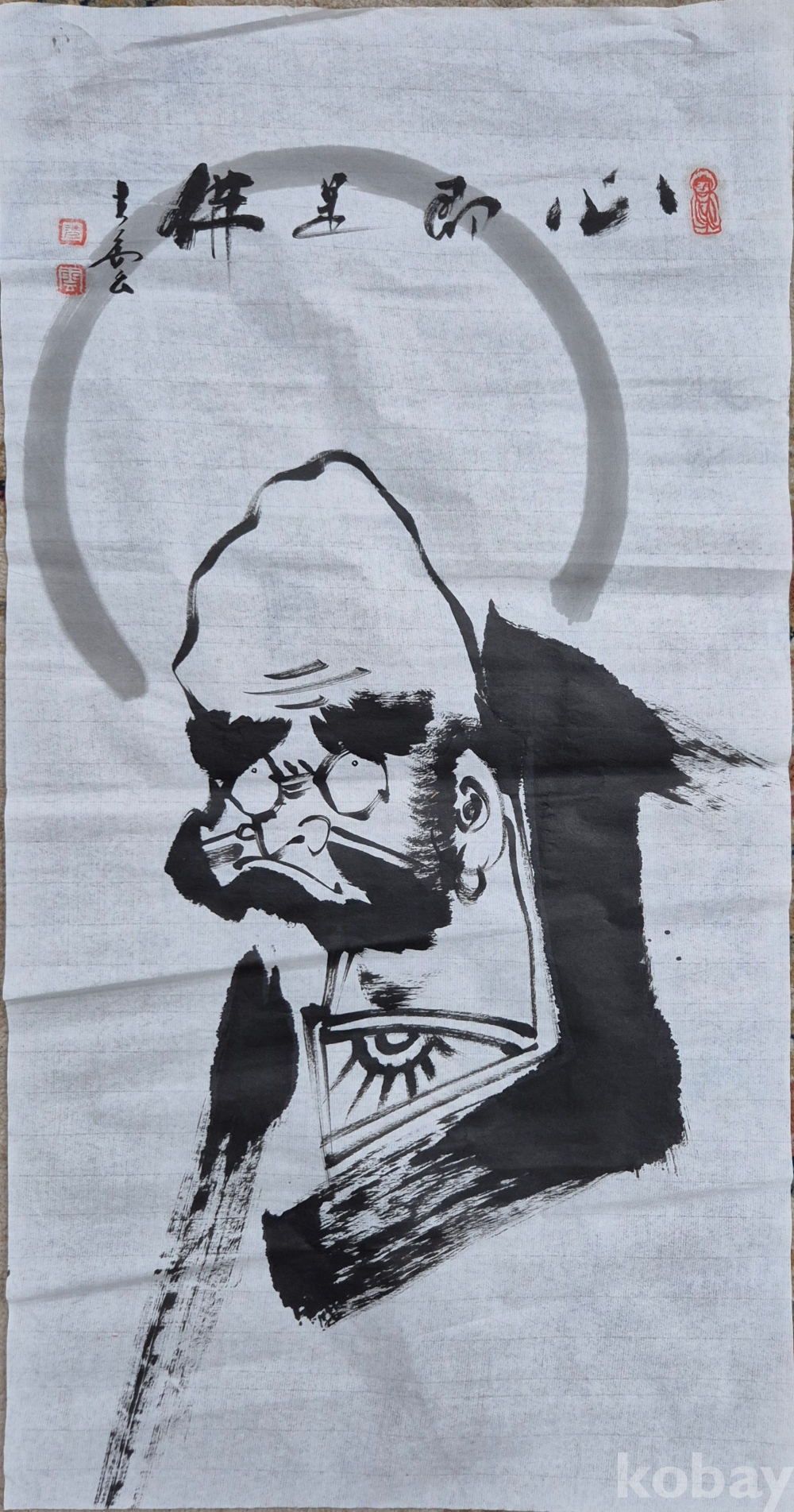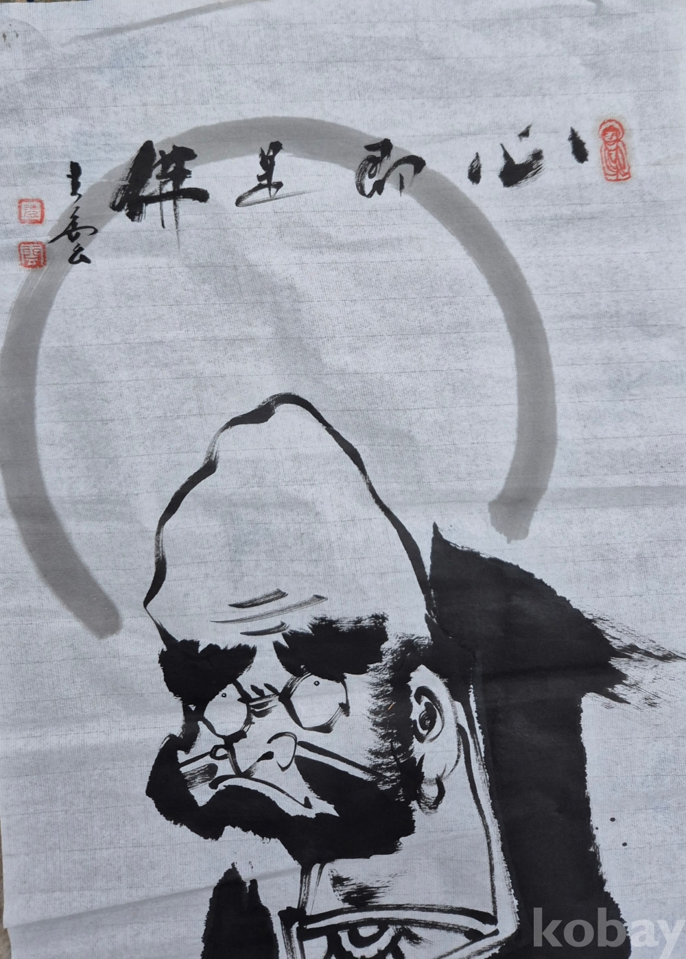 독특한 기법으로 잘 그려진 달마도'이오니 작품 이미지상 수결 및 낙관'등 두루 잘 참조하시고