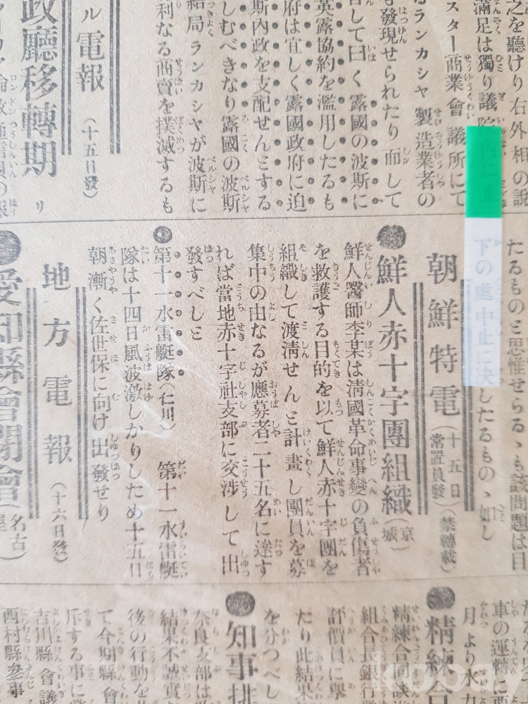 [EE94]*東京日日新聞/1911.12.17./朝鮮特電.鮮人적십자단조직(경성),제11수뢰정대(인천)/