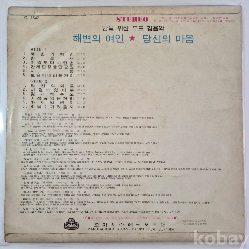 [추억의 희귀 LP 기획전] (밤을 위한 무드 경음악) / 해변의 여인 ☆ 당신의 마음