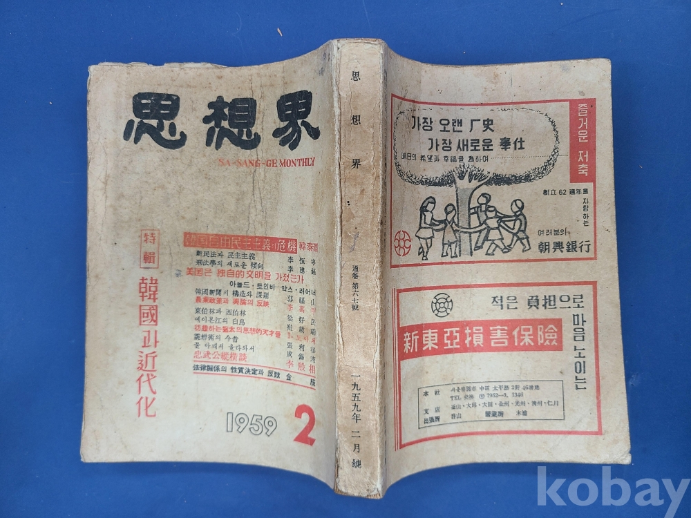▶사상계(1959년 2월호)/사상계사,442쪽/전체적으로 헐었고, 얼룩있음