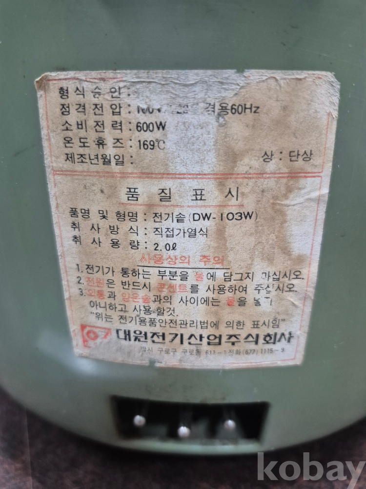 1970년대 대원 전기 보온밥솥 전원 정상작동 전원잭 포함 36*30*30
