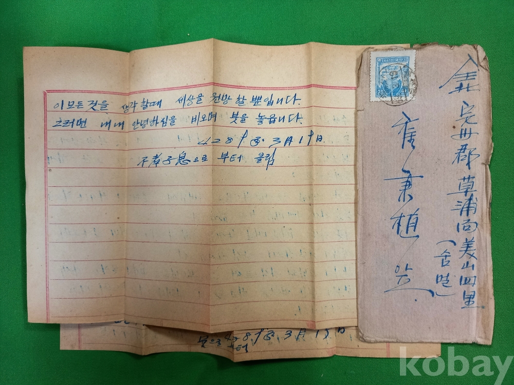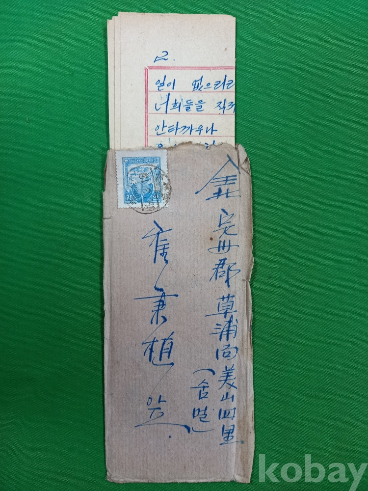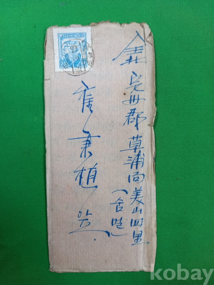 봉투 상단 부분 찢김 있으며, 세월의 흔적 있으나 상태 양호합니다