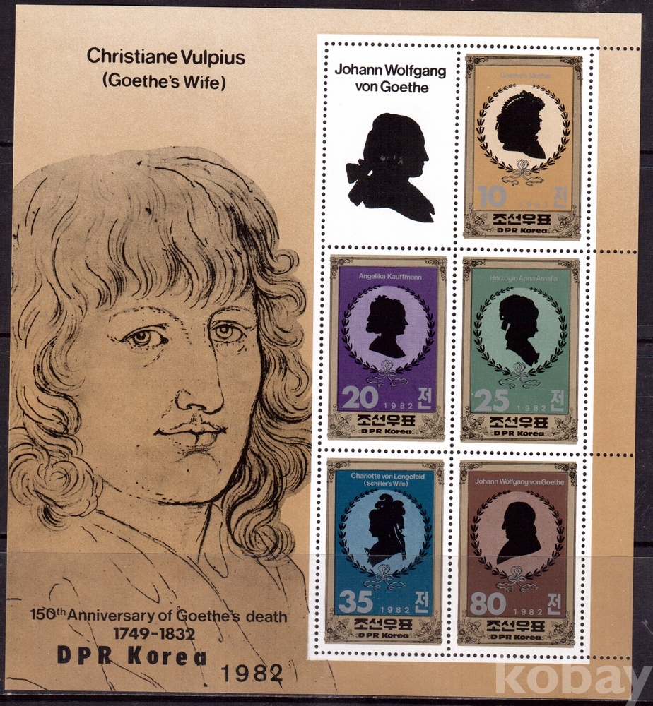 (인물) 북한 1982.7.25 괴테서거 150돐 sheetlet of 5+label MNH