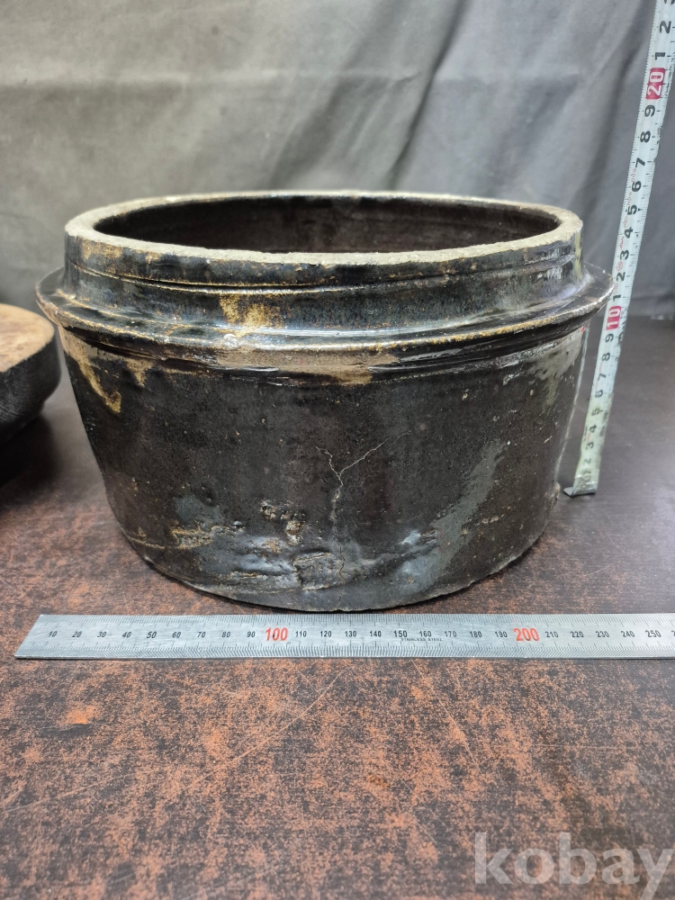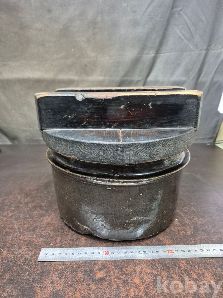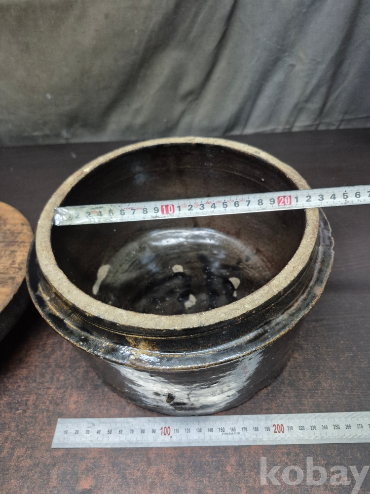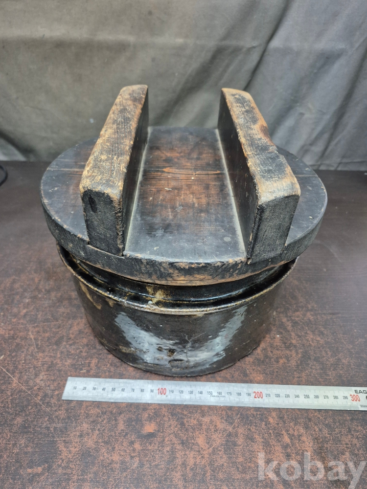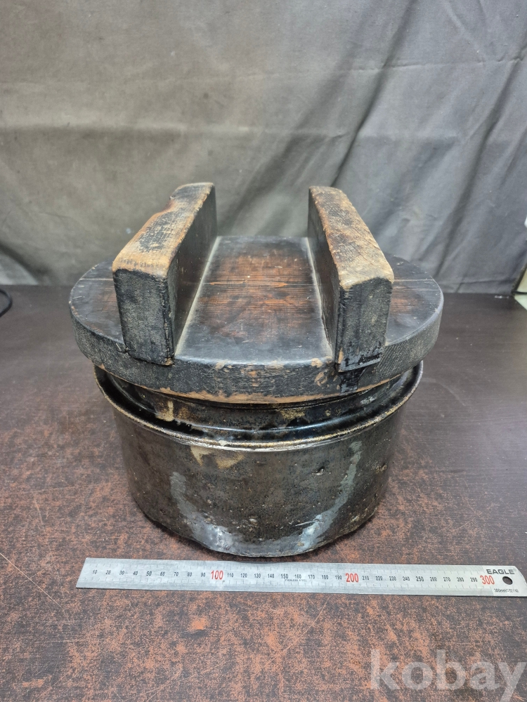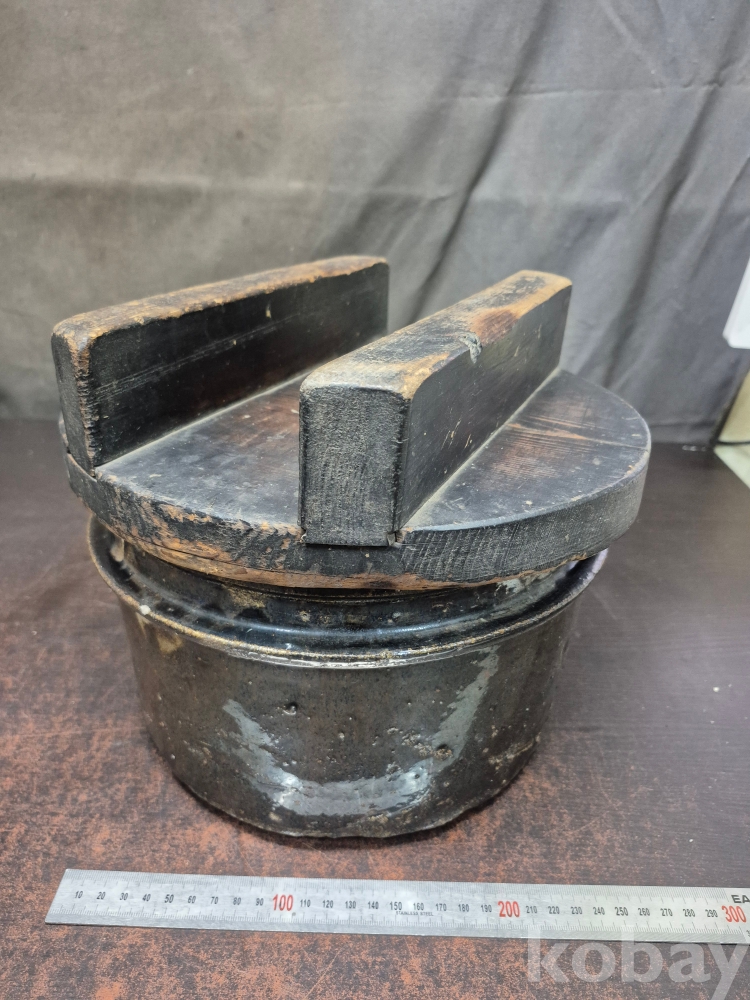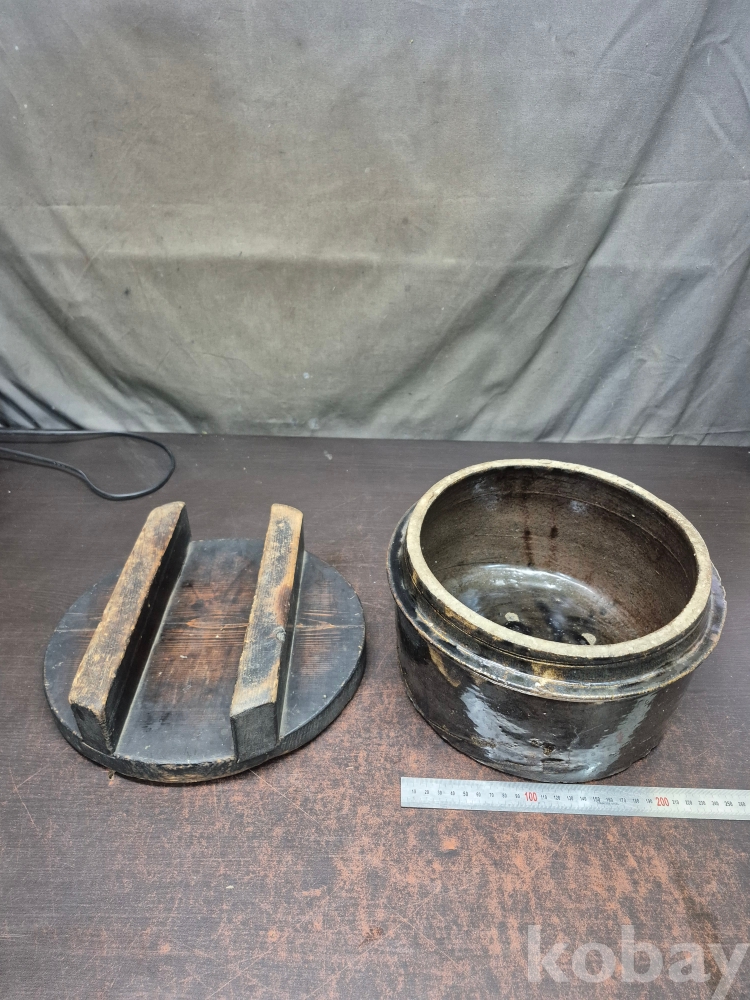 백토로 만들어진 옹기솥과 나무로 만들어진 나무뚜껑 꺠진곳 없어요 28*28*16