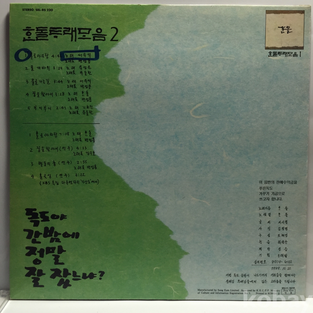 LP 300-20 한돌타래모음 2집 - 홀로아리랑 자켓 EX+ 알판 EX+ 89 년 국내