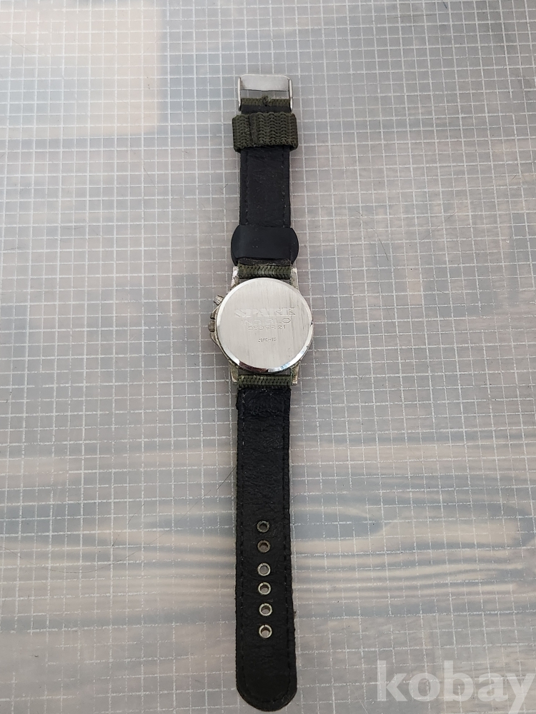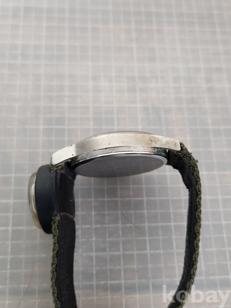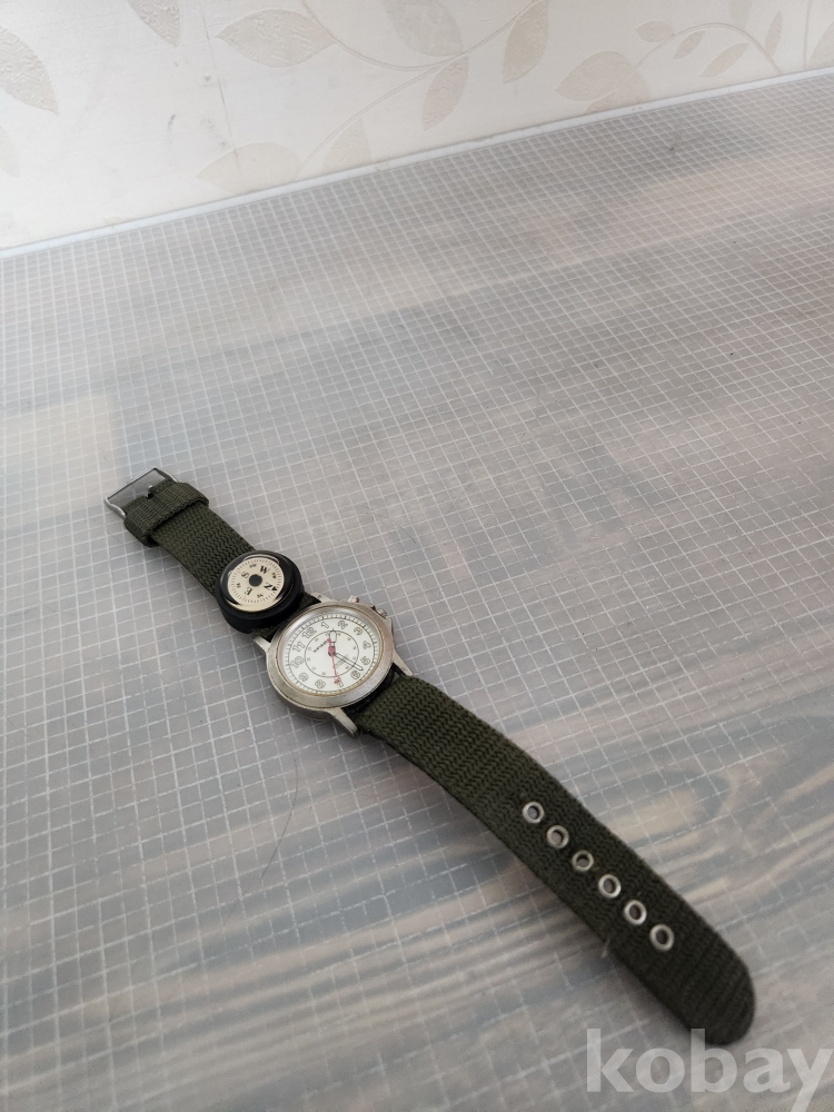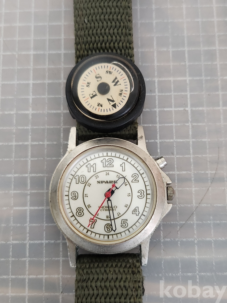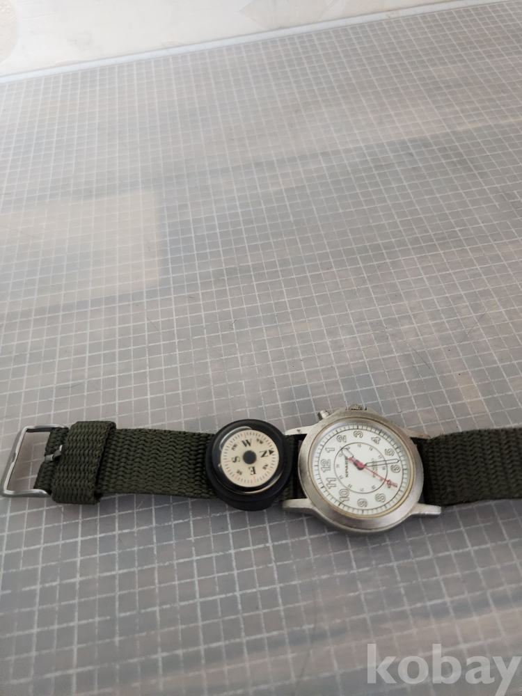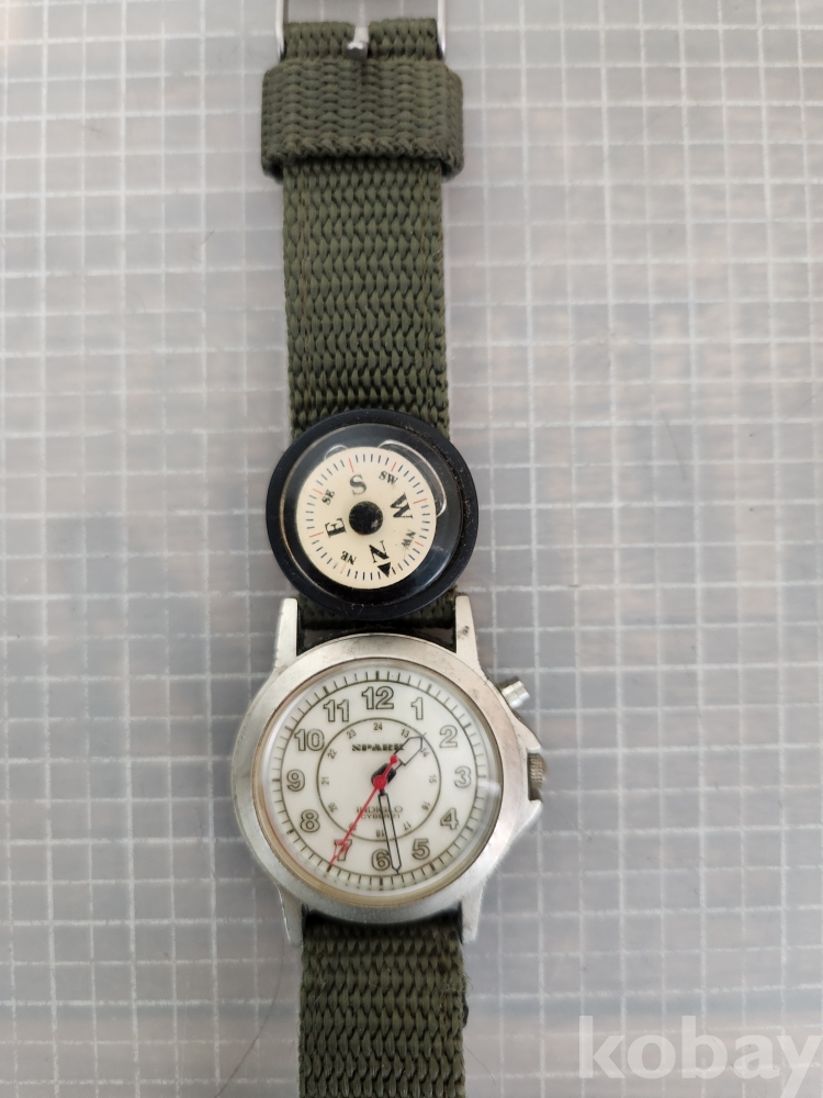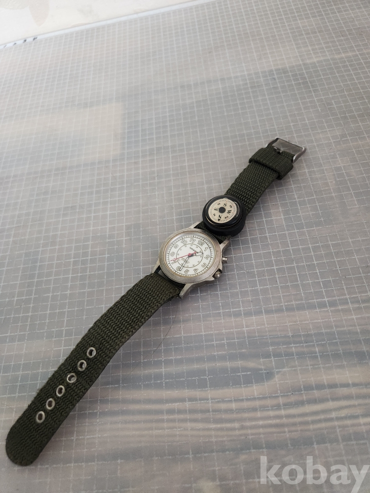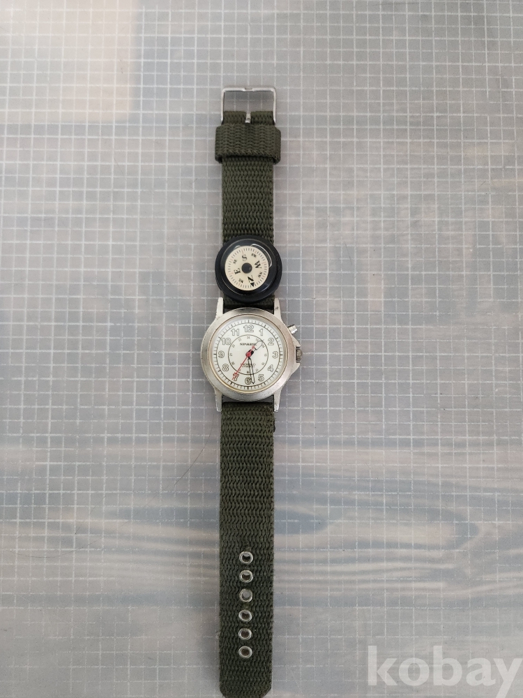 올리브 그린 색상의 밴드와 나침반이 부착되어 있습니다