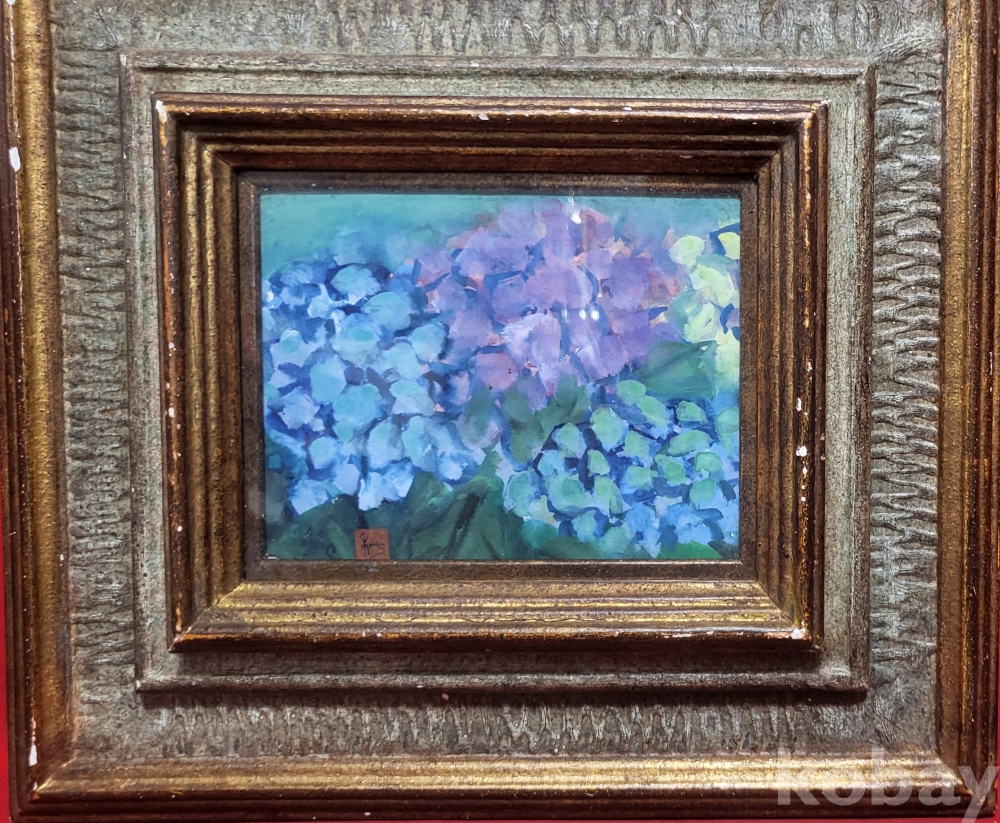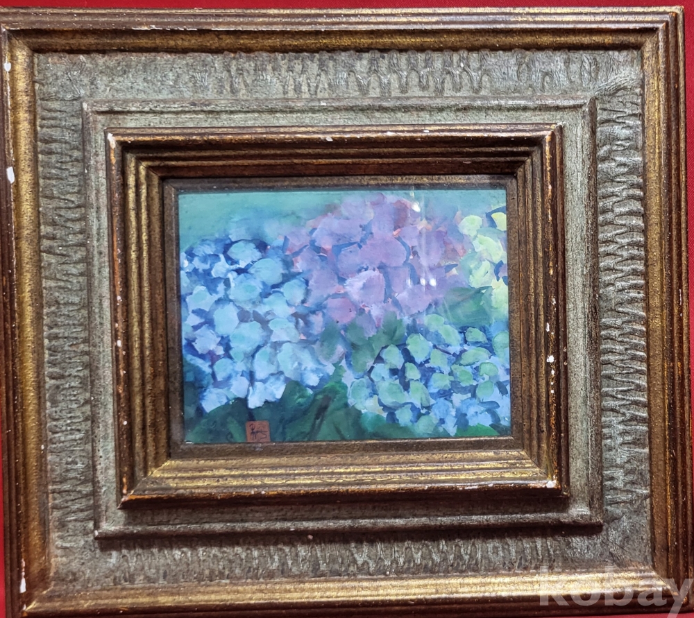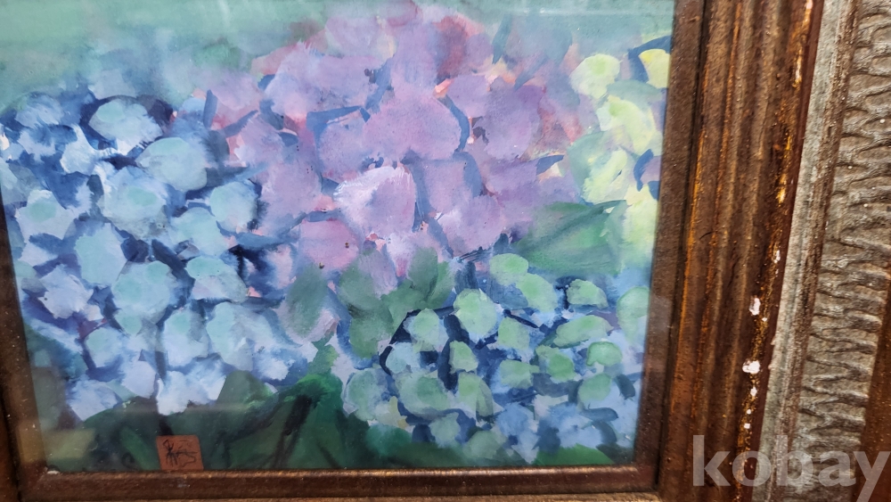 작가 사인이 보이는 최고급형 액자에 담겨진 수국 그림입니다,