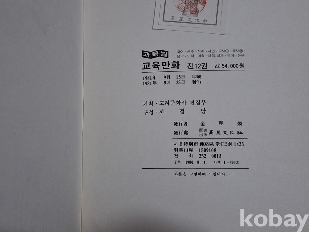 81년 초판 과목별 교육만화로