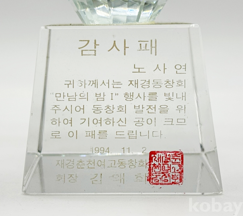 상품명 | 1994년 재경동창회 만남의밤Ⅰ 행사 '노사연' 감사패 | ||