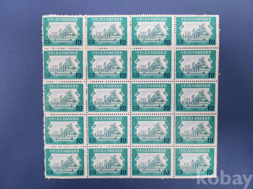 중국 1989년 拾圓 수입인지 20매 Block 사용필,VF
