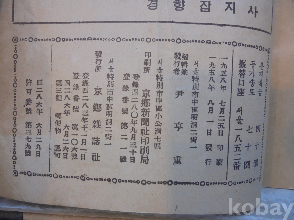 | 제조국 | 한국 | 연대 | 1945년~1959년 |