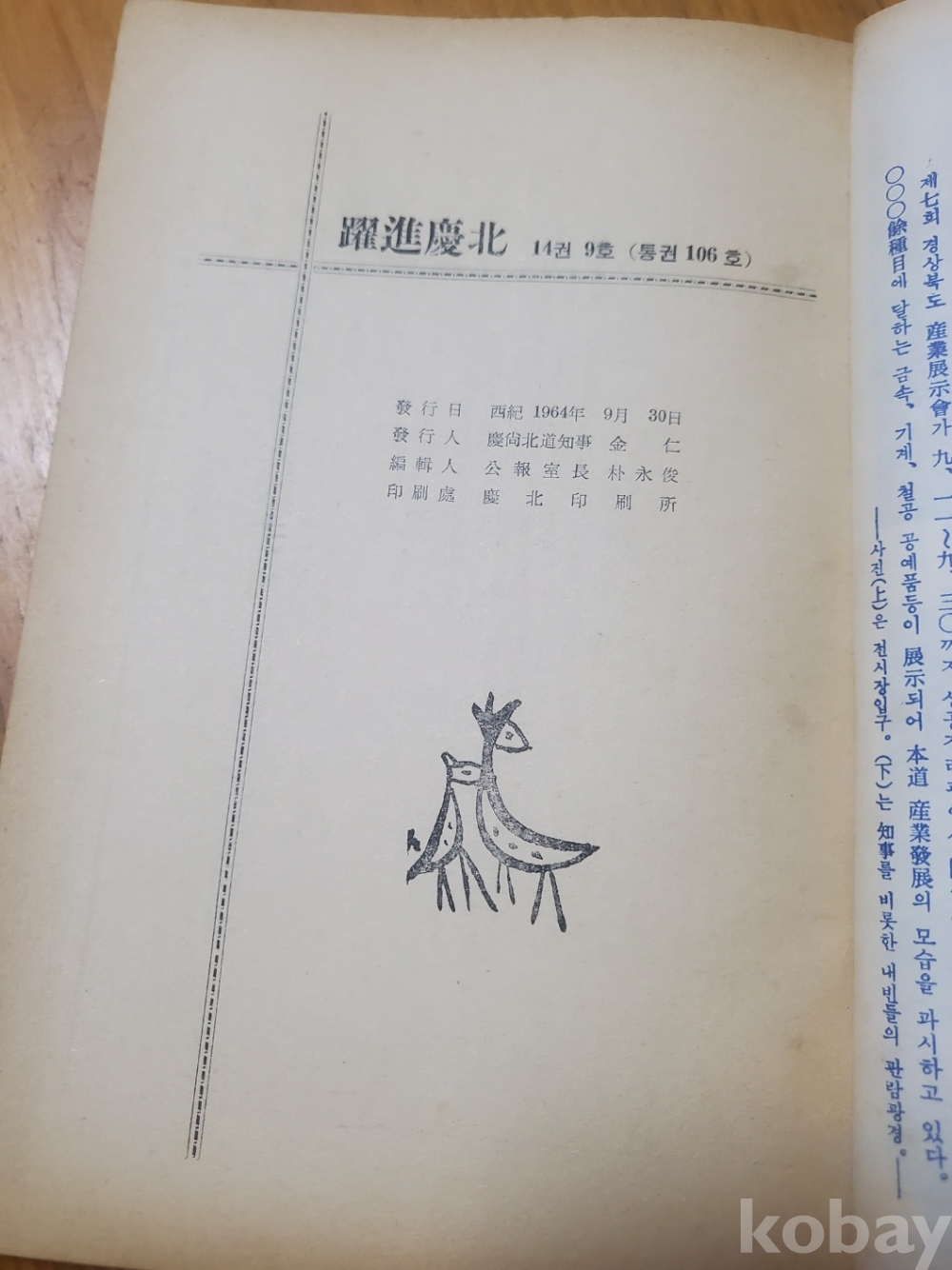 1. 약진경북 통권 106호, 경상북도, 1964년, 164쪽, 상태 상, 사진 참조